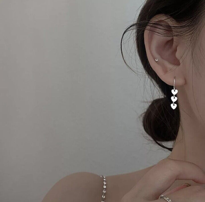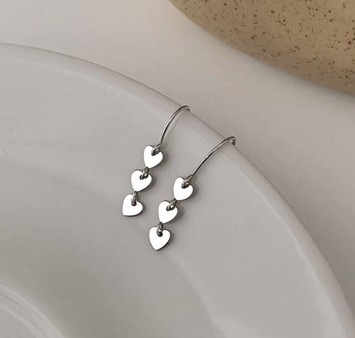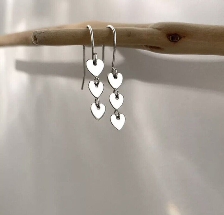Damen Ohrhänger Herzchen Anhänger Sterling Silber 925 Langkette Ohrringe