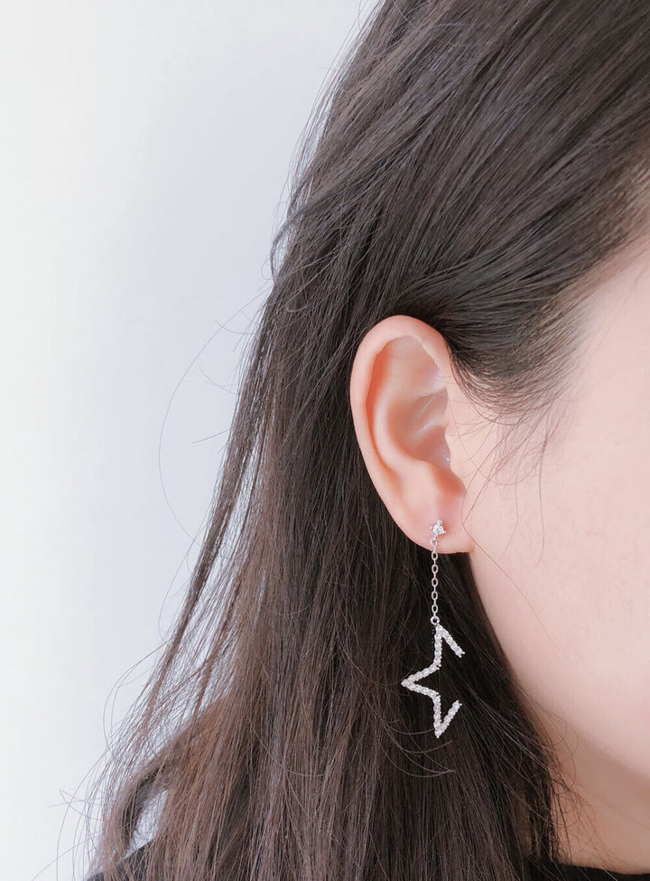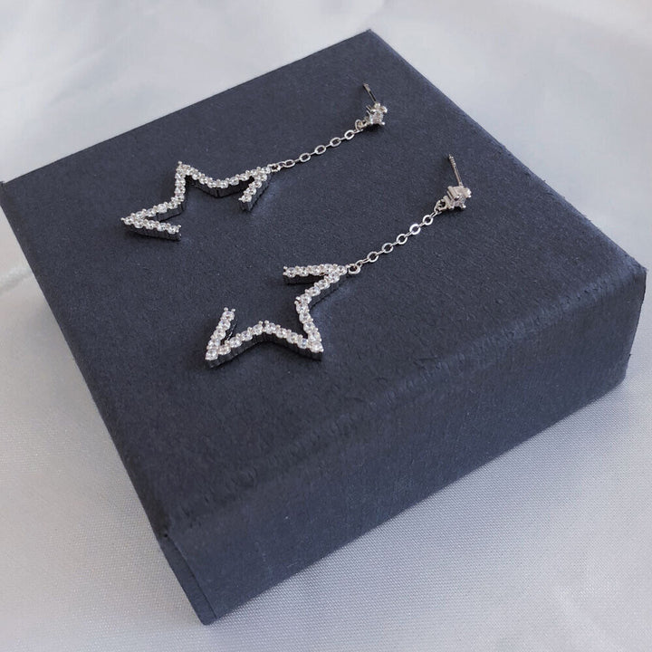 Damen Ohrhänger Stern lang Kette Sterlingsilber 925 Ohrringe