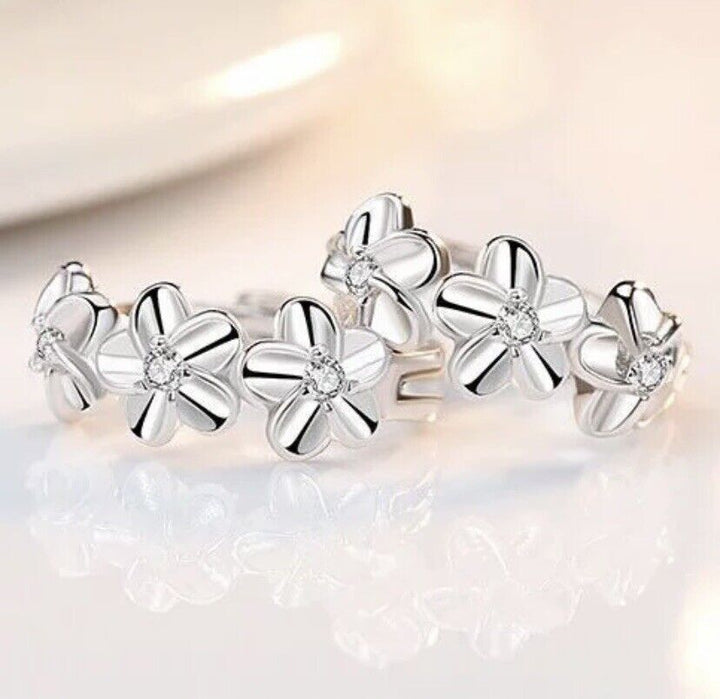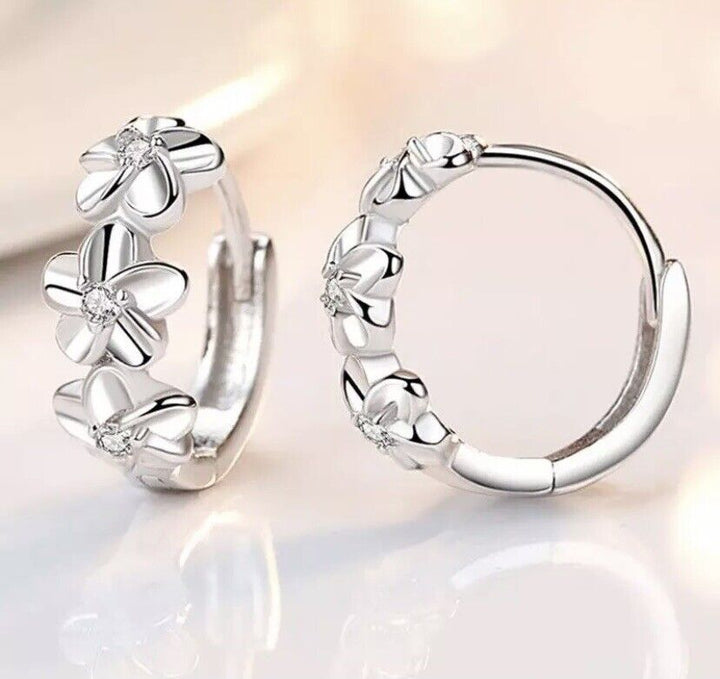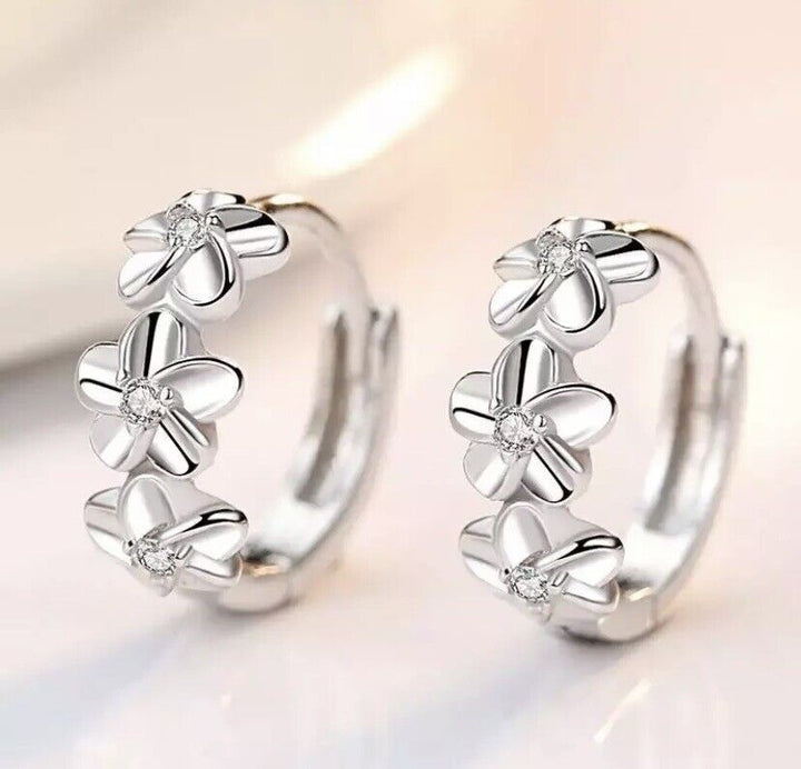 Damen, Ohrringe, Creole, Creolen, 925er echt Silber, Blume, Blüte