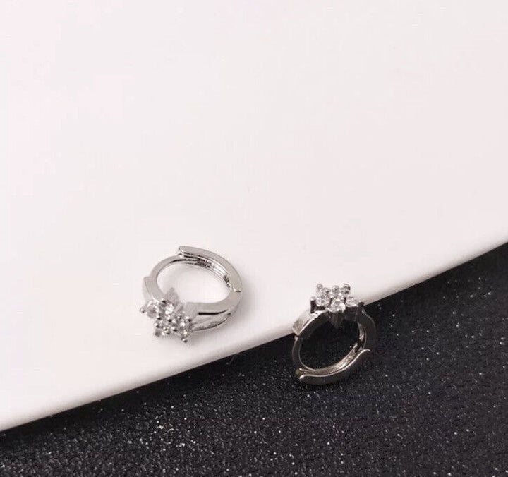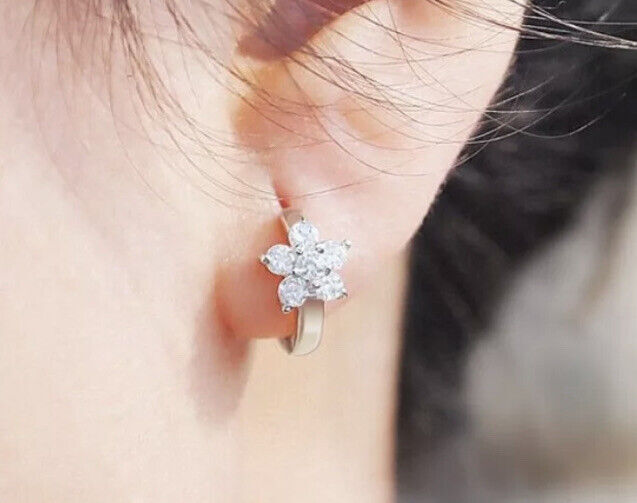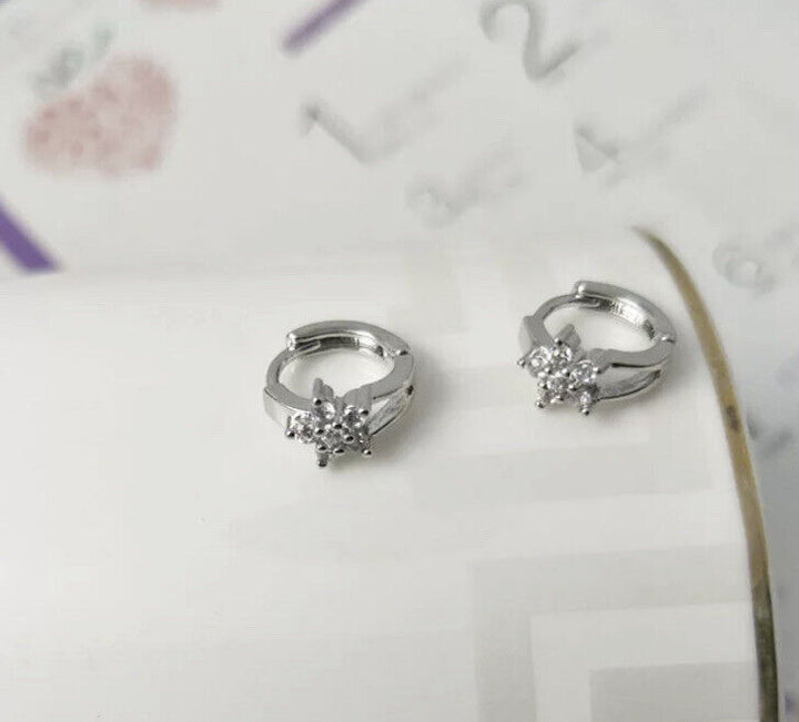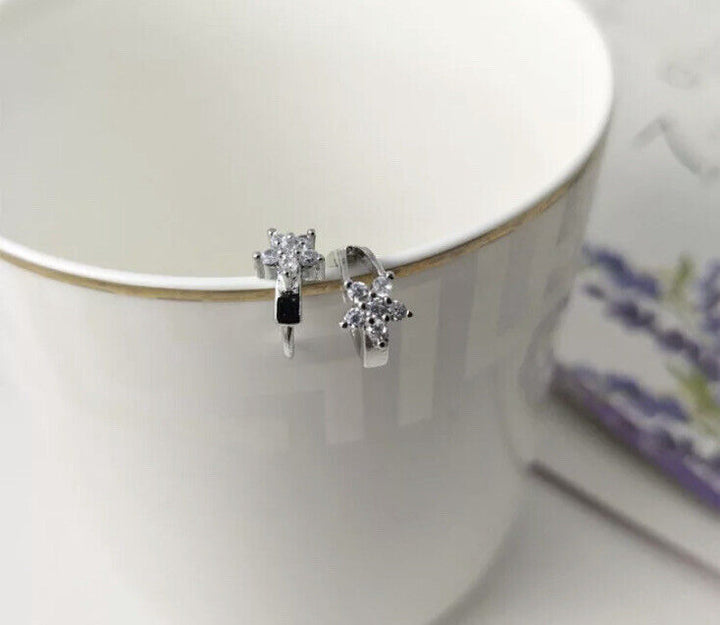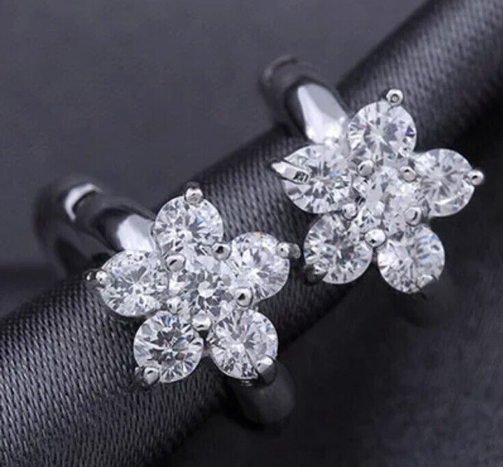 Damen Ohrringe Creolen Blume Zirkonia Silber 925