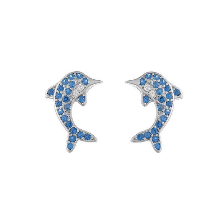 Ohrringe Ohrstecker Blauer Delphin Sterlingsilber 925 mit Zirkonia