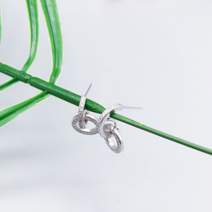 Damen Ohrringe halb Rund Creolev 925 Silber Zirkonia Mädchen Ohrstecker
