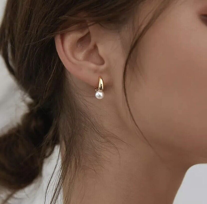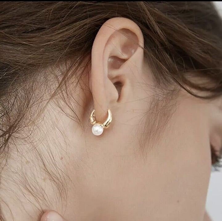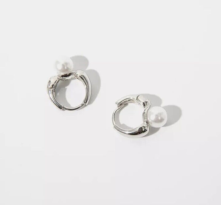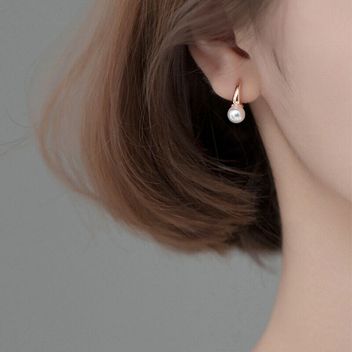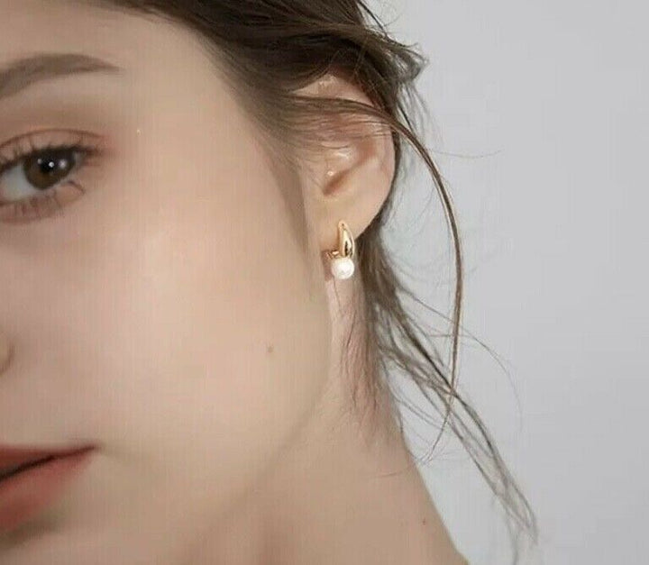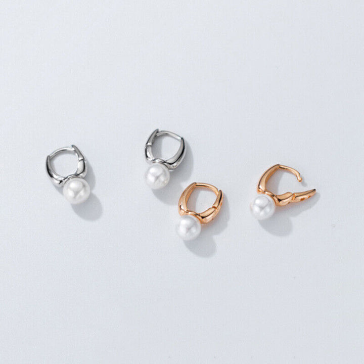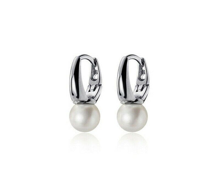 Damen Ohrringe Klapp Creolen 925er Sterling Silber Perlen