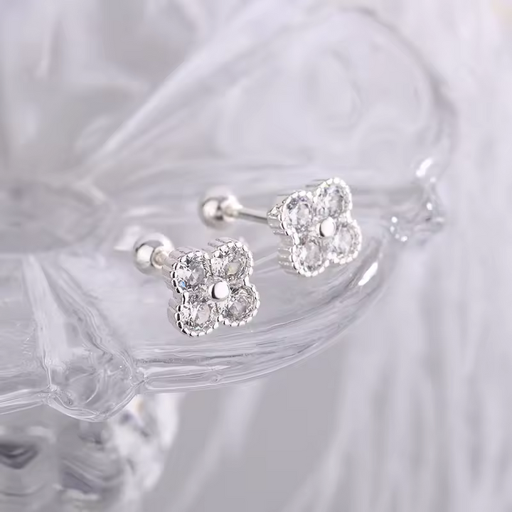 Damen Ohrringe Mini-Blume, Sterling Silber 925, Zirkonia, Damen Ohrstecker