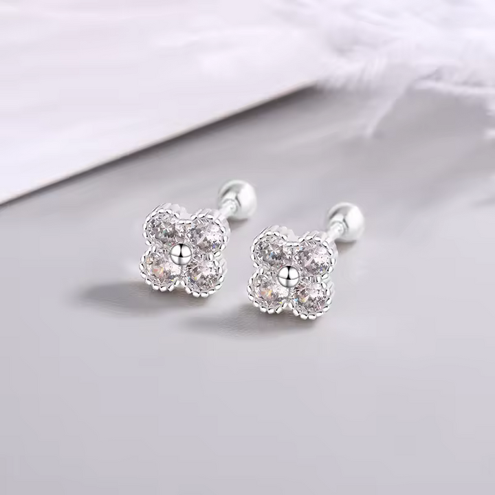 Ohrringe m.Mini-Blume, Sterling Silber 925, Zirkonia, Damenohrringe m. Schraubenverschluss