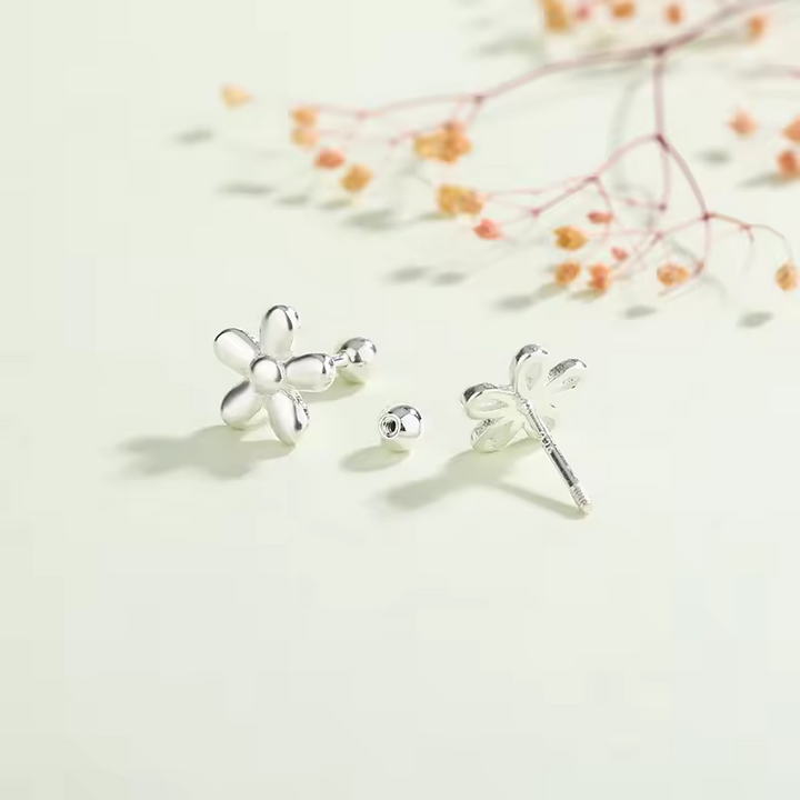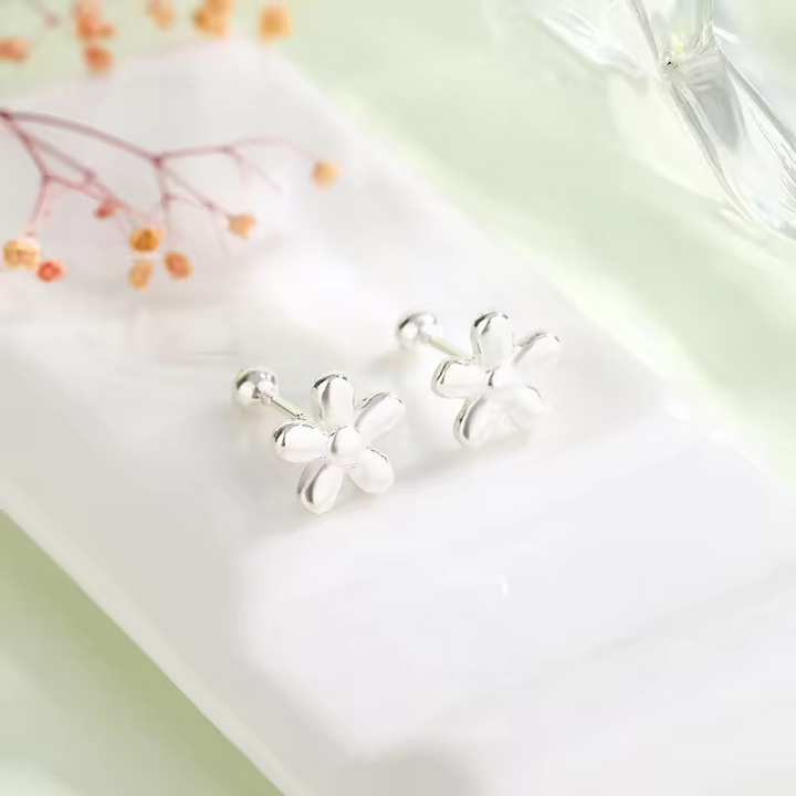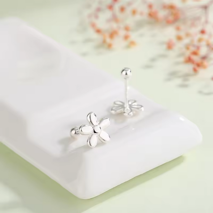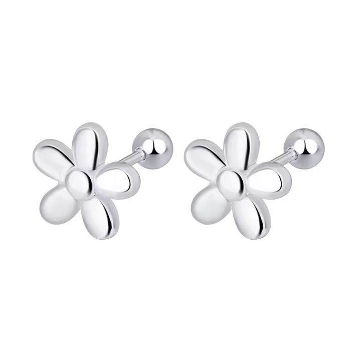 Damen Ohrringe mit Blume, Sterling-Silber 925, glatt, Damen Ohrstecker 9 mm