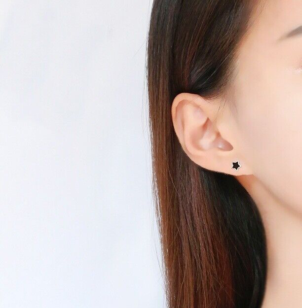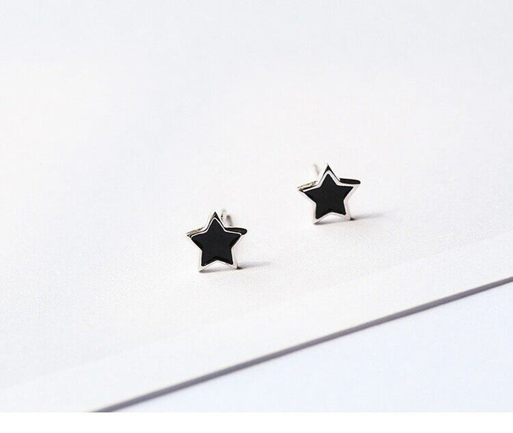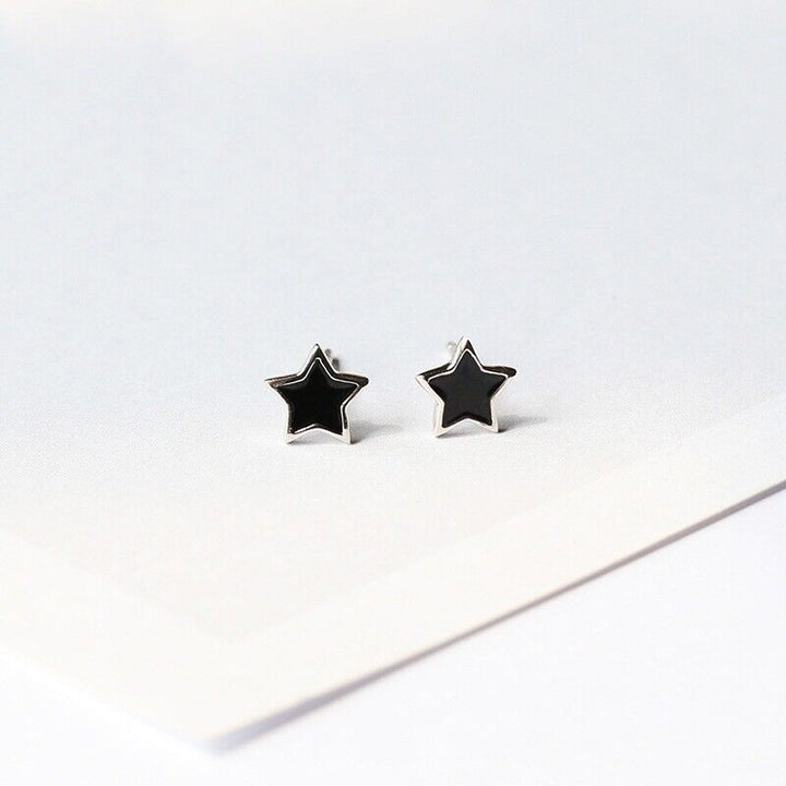 Damen Ohrringe Schwarze Sterne Sterling Silber 925er Ohrstecker