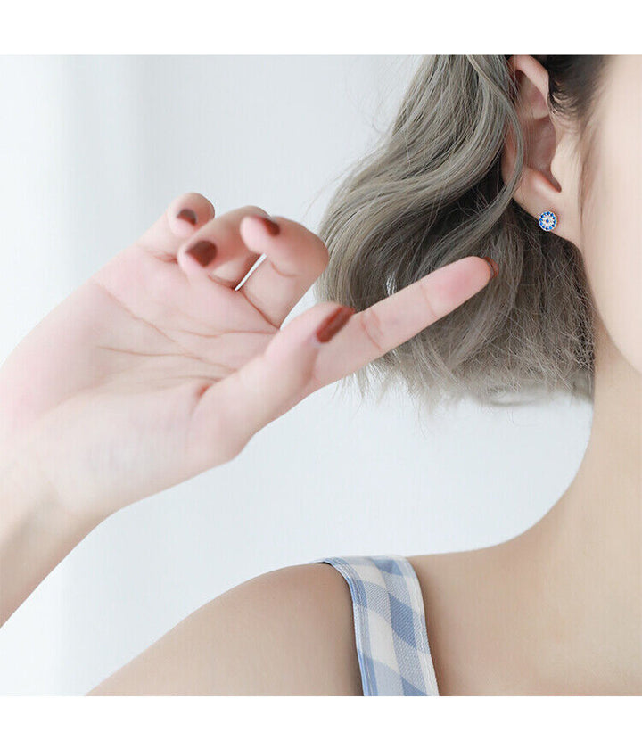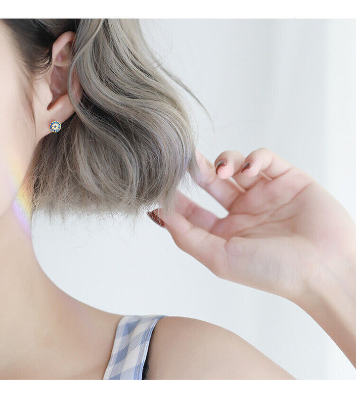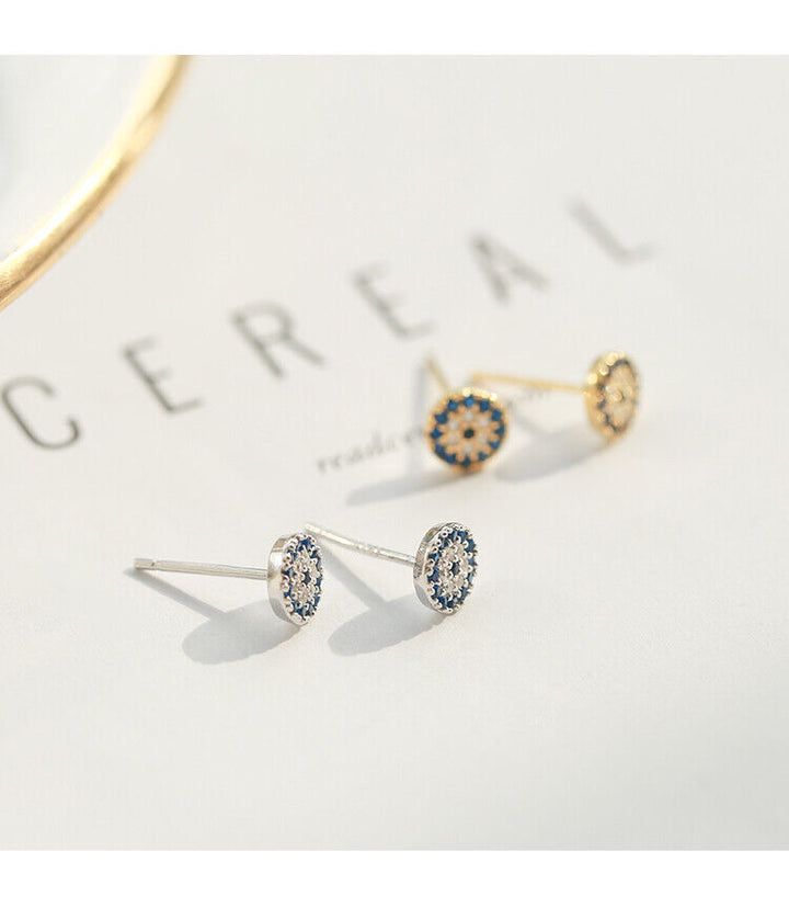 Damen Ohrstecker Silber 925 Ohrringe rund blaue und weiße Kristalle