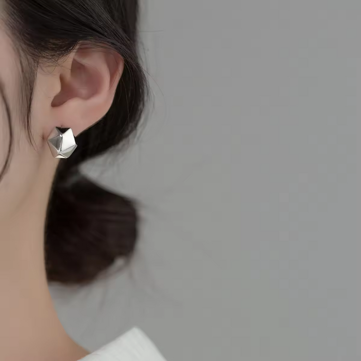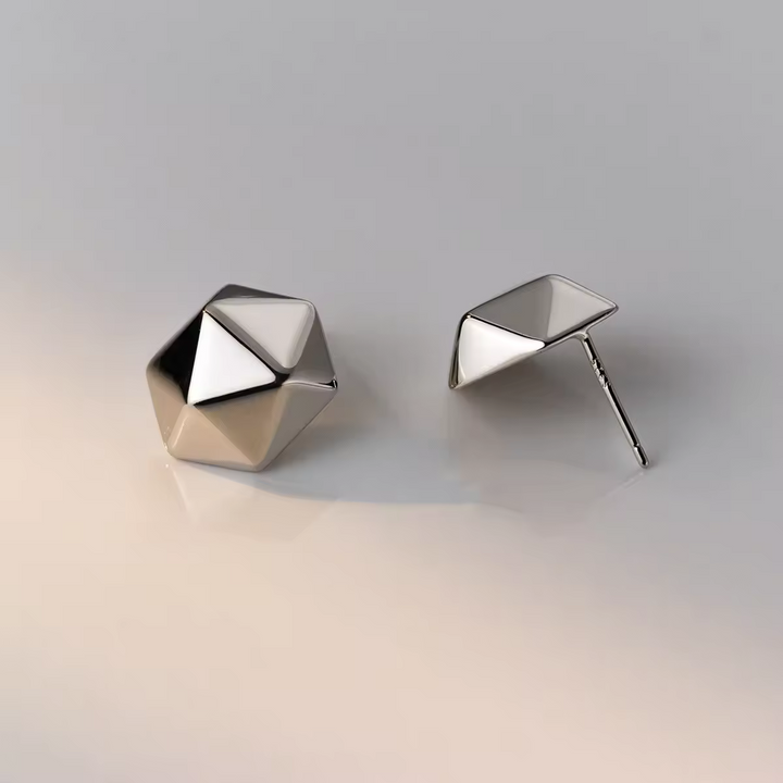 925er Silber Ohrstecker mit facettiertem, geometrischem Design – modern, stilvoll und perfekt für minimalistische Looks. Unisex tragbar.