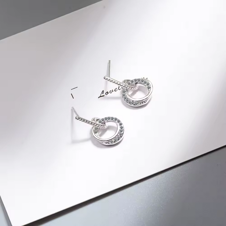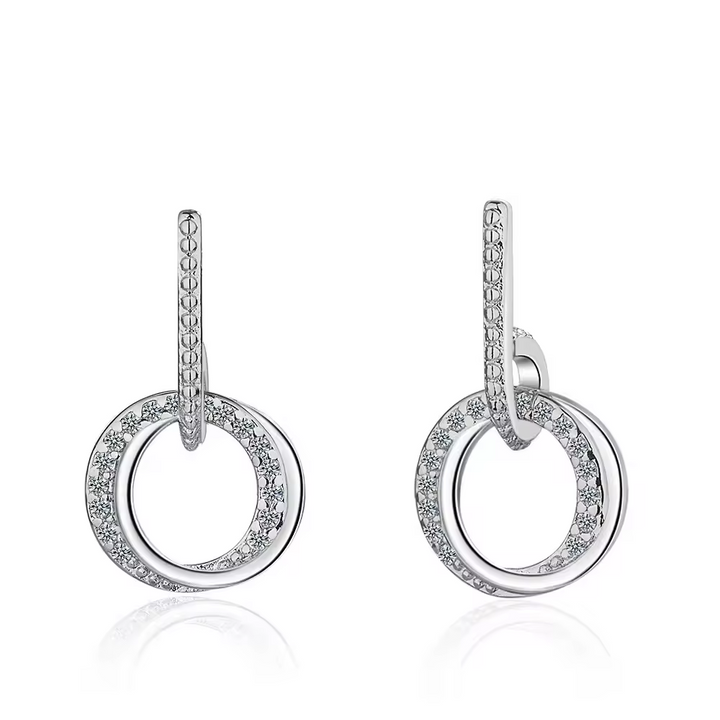 Damen-Ohrstecker mit Anhänger, Kreis mit Zirkonia, Silber 925.
