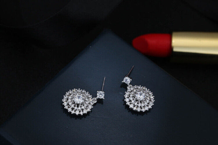Damen Ohrstecker mit Anhänger Rund Silber 925 Zirkonia Ohrringe