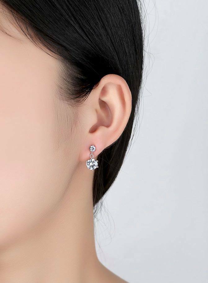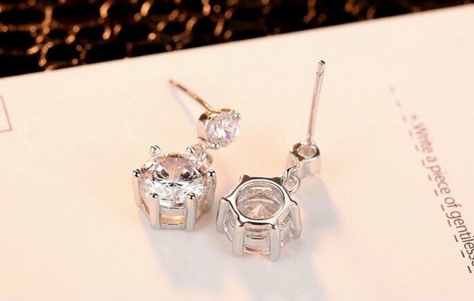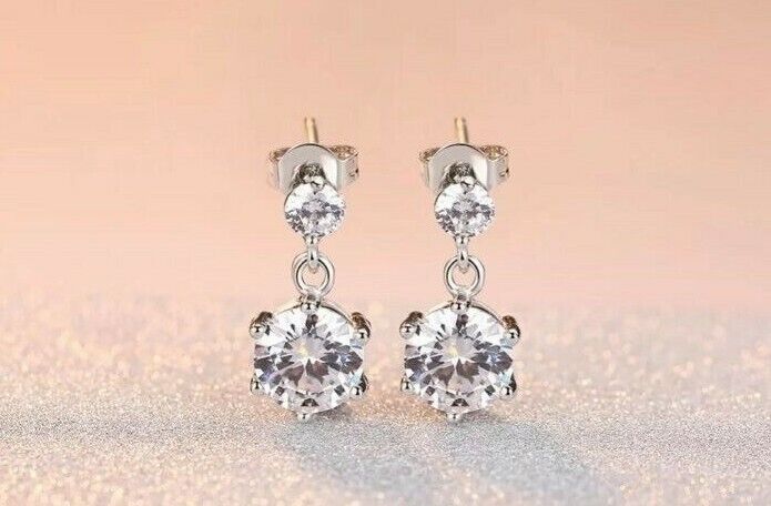 Damen Ohrstecker Ohrhänger Zirkon Rund Kristallen Silber Ohrringe