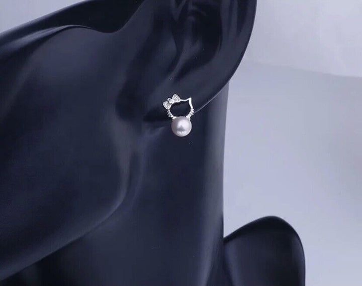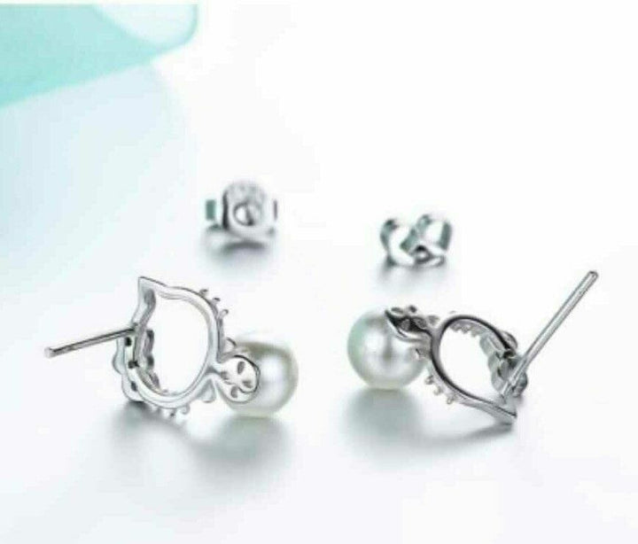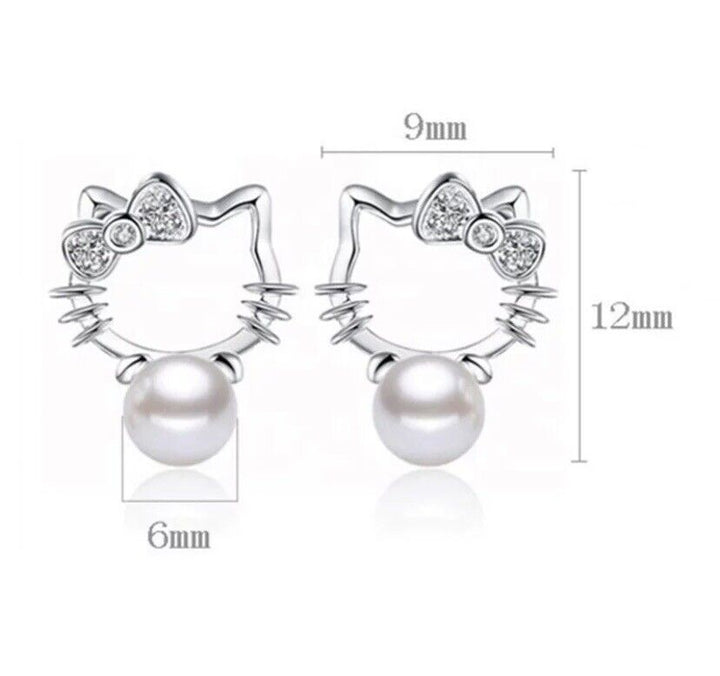 Damen Ohrstecker, Ohrringe, Katze، Silber 925, Damen, Kinder