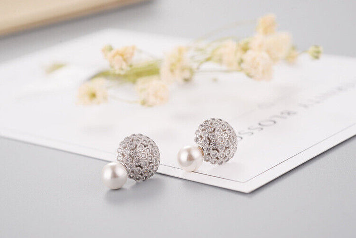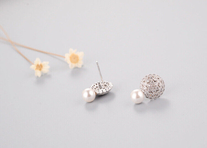 Damen Ohrstecker Rund Perle Silber 925 Damen Mädchen Ohrringe