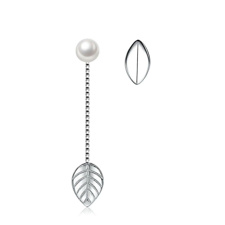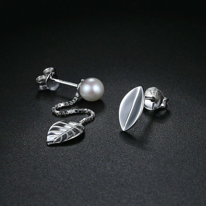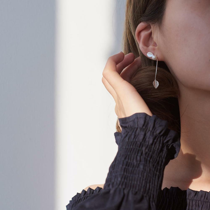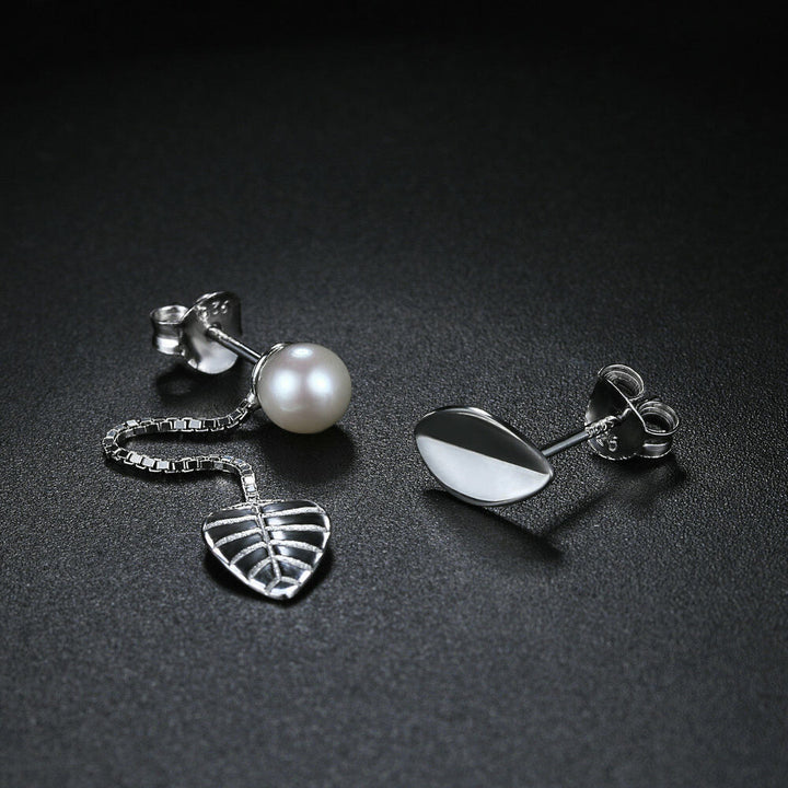 Damen Ohrstecker Silber 925 Blatt mit Perlen-Kette-Stecker Mädchen Ohrringe