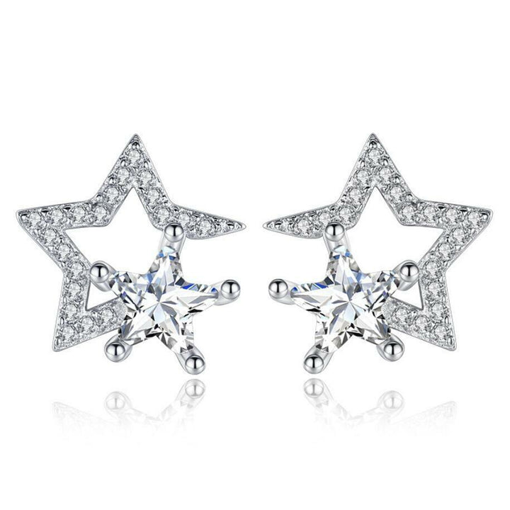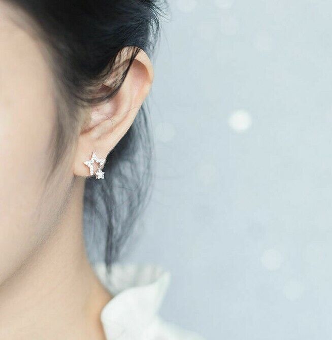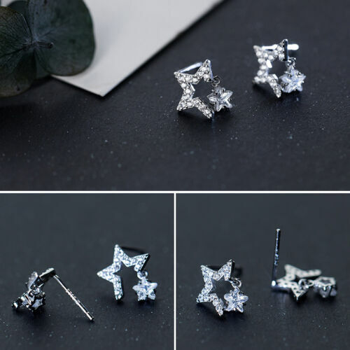 Damen Ohrstecker zwei Sterne mit Zirkonia Silber Damen Ohrringe
