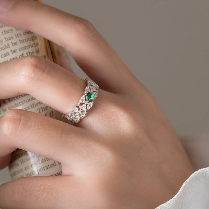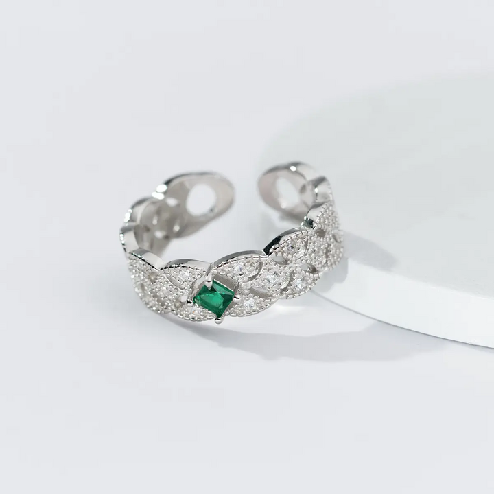 Damen Ring 49-56 verstellbar Silber 925 Raute Grüner Zirkonia