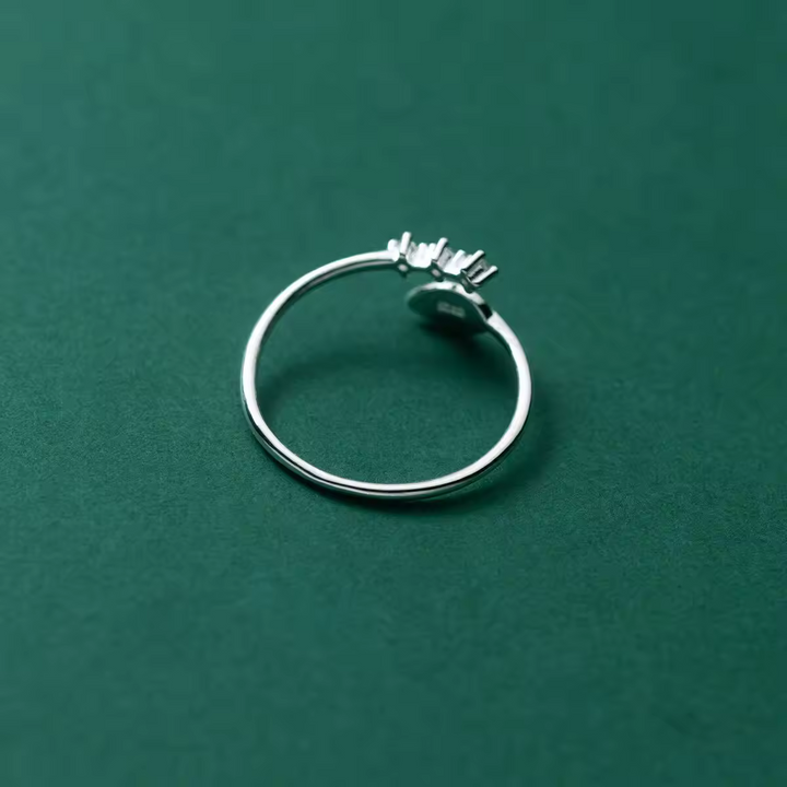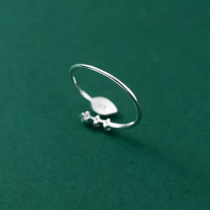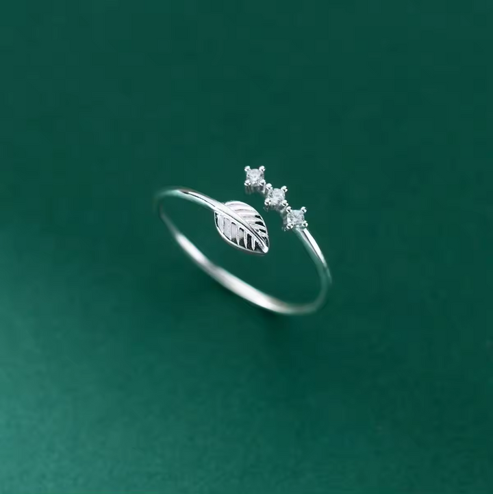 Damen-Ring Blatt mit 3 Zirkonia, Sterling Silber 925, Größe wählbar