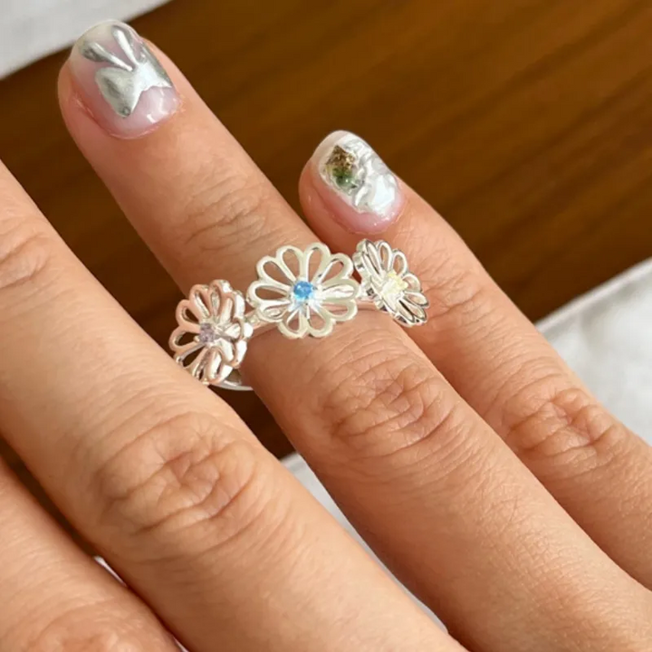 Damen Ring Blume Sterling Silber 925 Zikronia offen 49-55 verstellbar