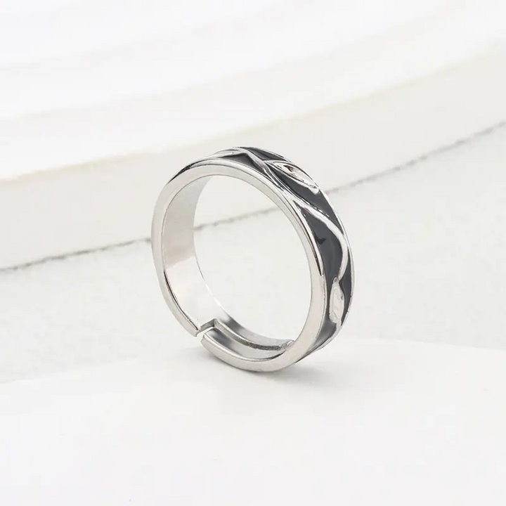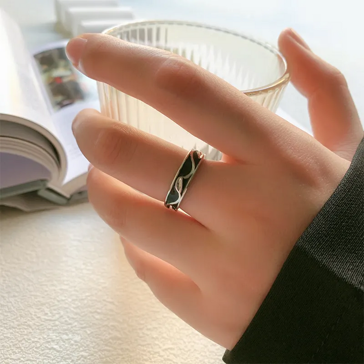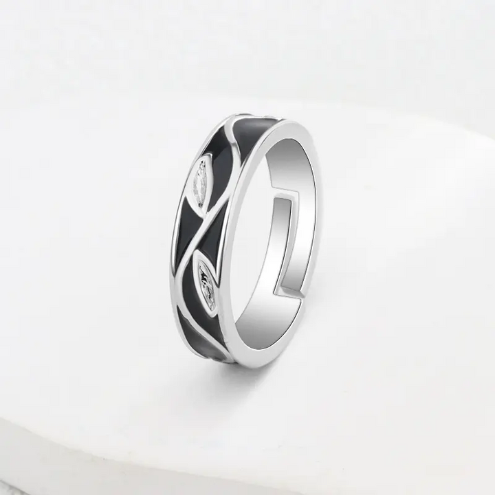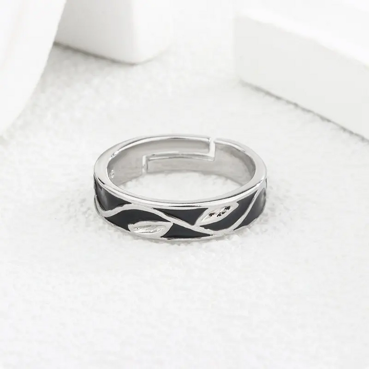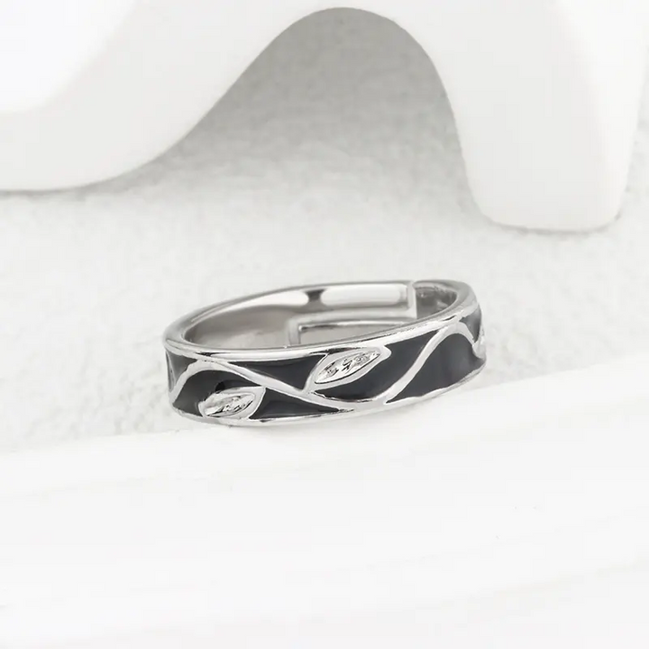 Damen Ring Blumen-Blatt Sterlingsilber 925 verstellbar 50-54 Schwarz