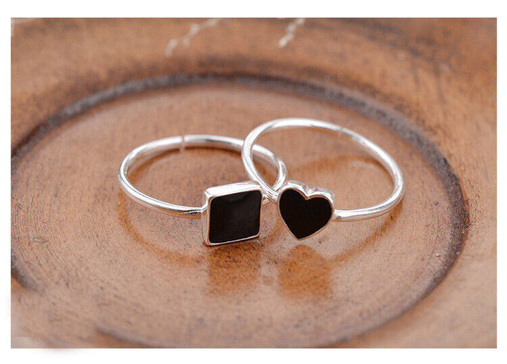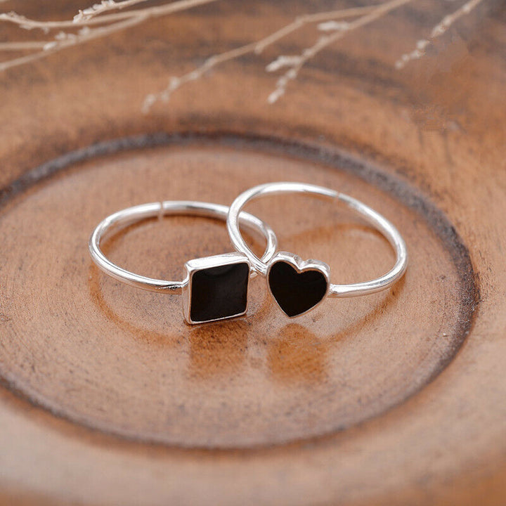 Damen Ring Sterling Silber 925 Quadrat schwarz antik Größenverstellbar