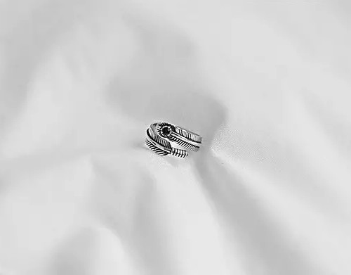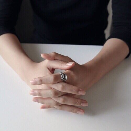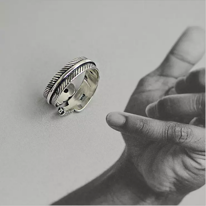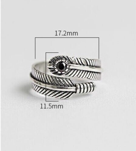 Damen Ring Feder Sterling Silber 925 Geschwärzt Anpassbar für alle Größen