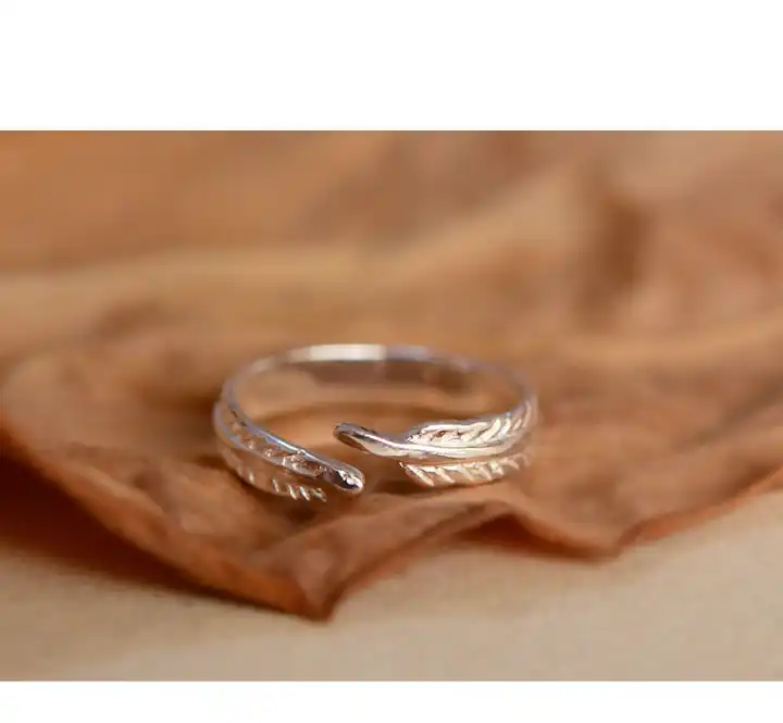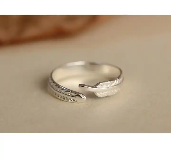Damen Ring Feder Sterling Silber 925 Größeverstellbar