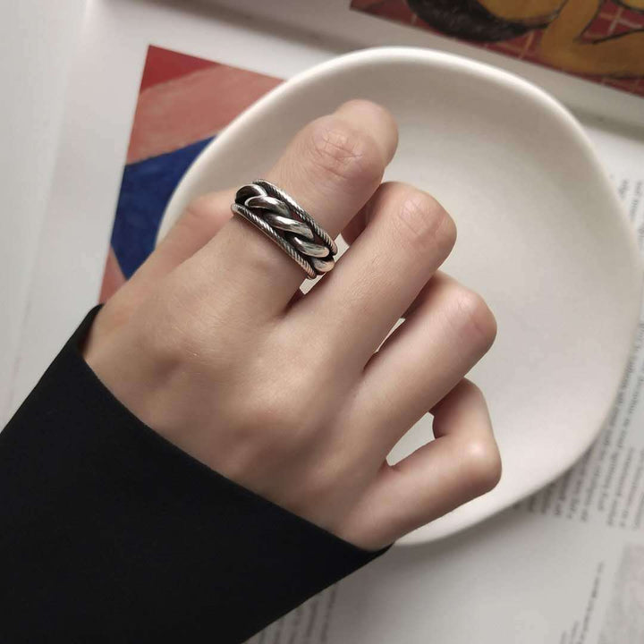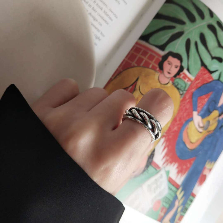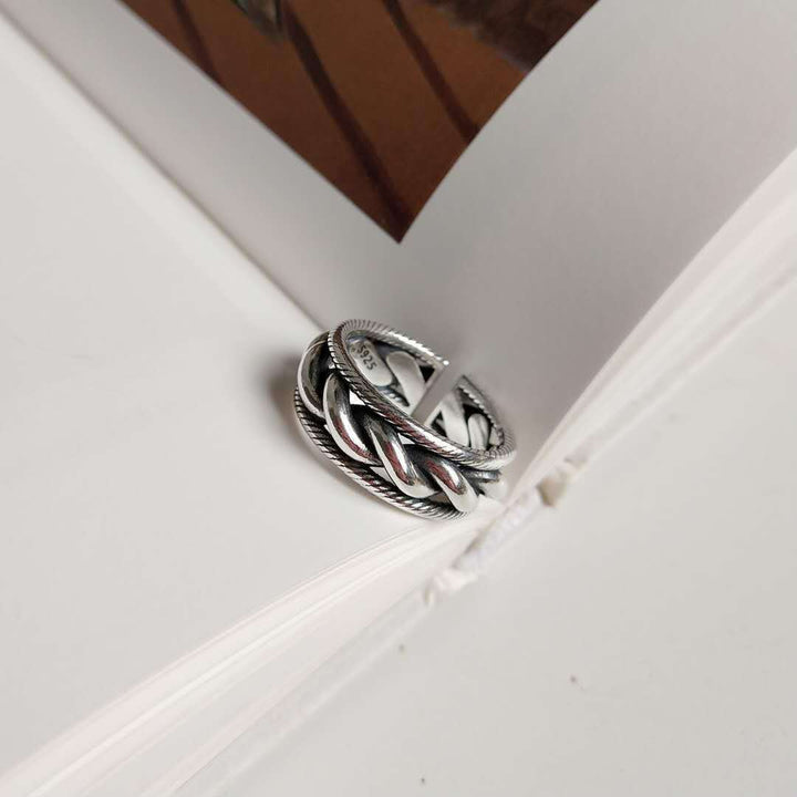 Damen Ring Geflochten echt Sterling Silber 925 Geschwärzt Offen