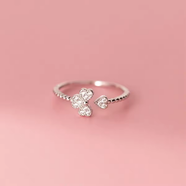 Damen-Ring Herz Schmetterling, Silber 925 mit Zirkonia, Größe Verstellbar