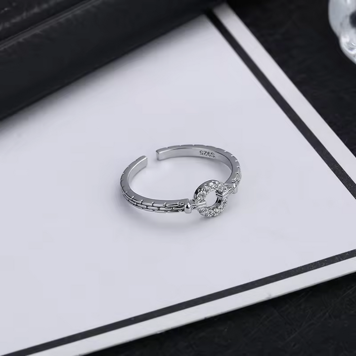 Damen Ring im Kreis-Ketten-Look, Größe verstellbar, Sterling Silber 925 Rund