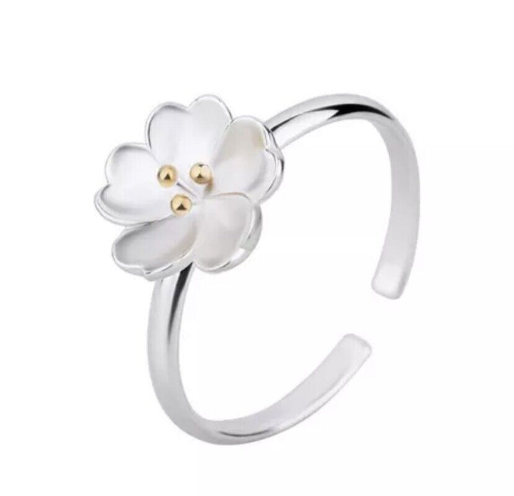 Damen Ring Kirschblüte Silber 925 Blume 49-54 verstellbar