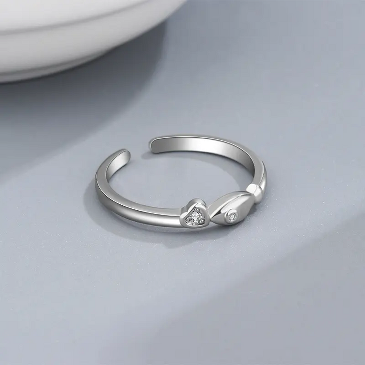 Damen Ring Kleine Herz Silber -Zirkonia, Schlank und verstellbar