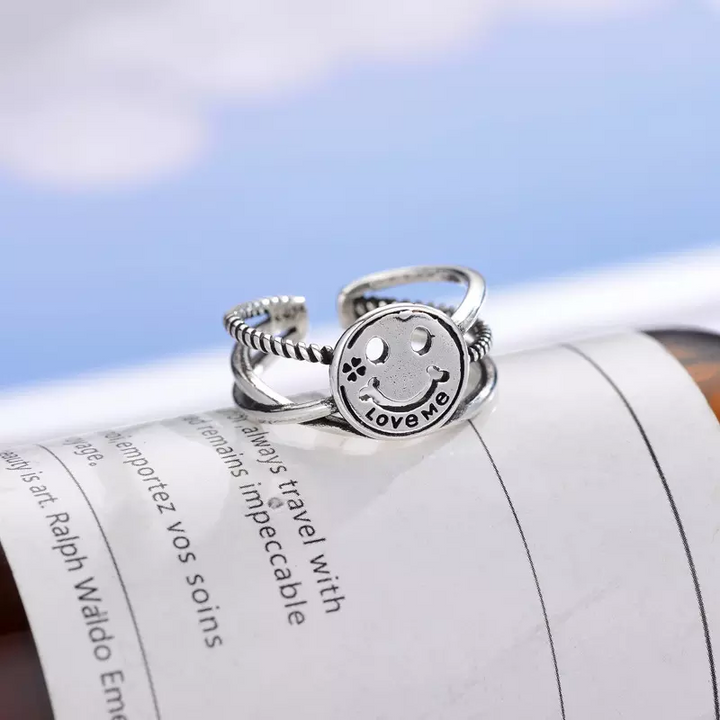 Damen Ring Love Me Sterlingsilber 925 smile Geschwärzt verstellbar 53-57