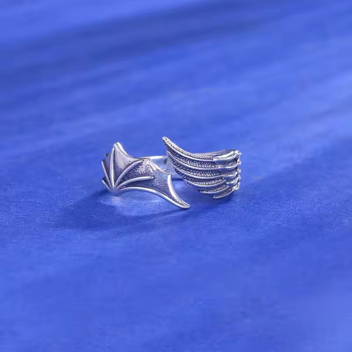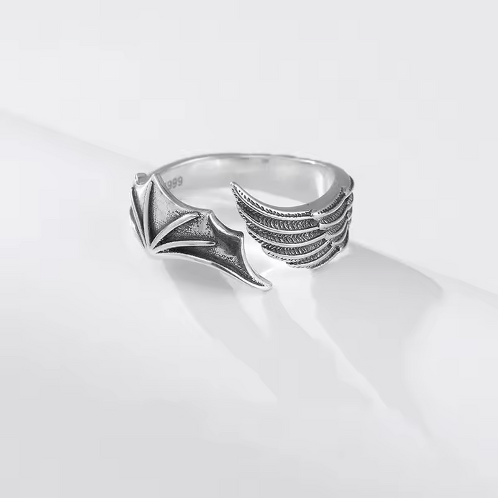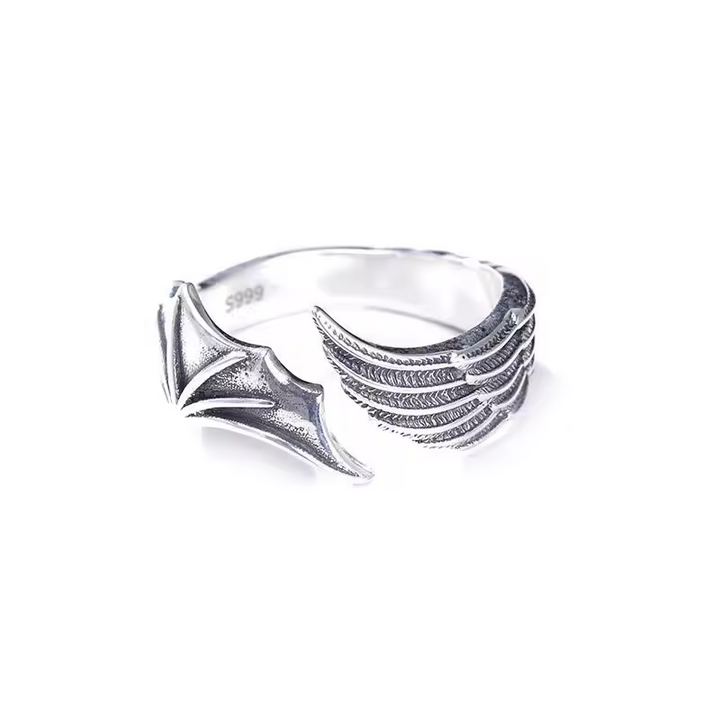 Damen Ring m. Engelsflügel-Motiv, geschwärztem Sterling Silber 925, offene Größe