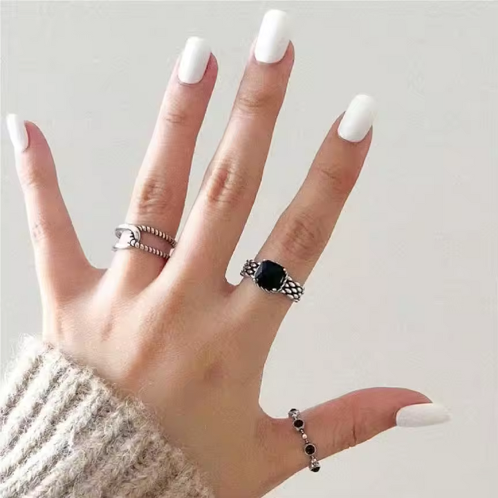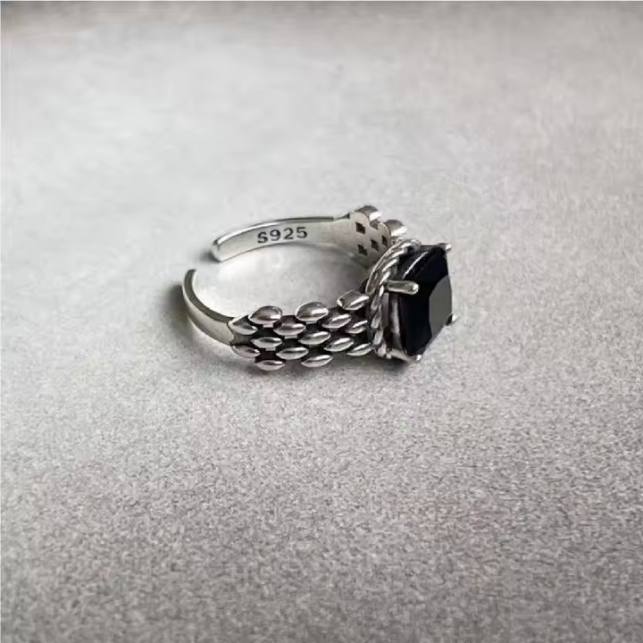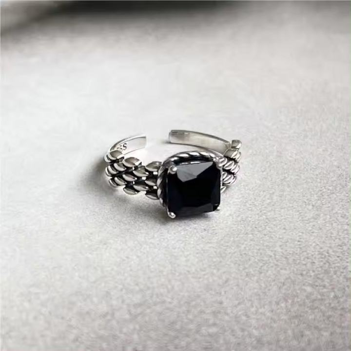 Damen Ring minimalistischen Retro-Stil quadratischem schwarzen Diamanten