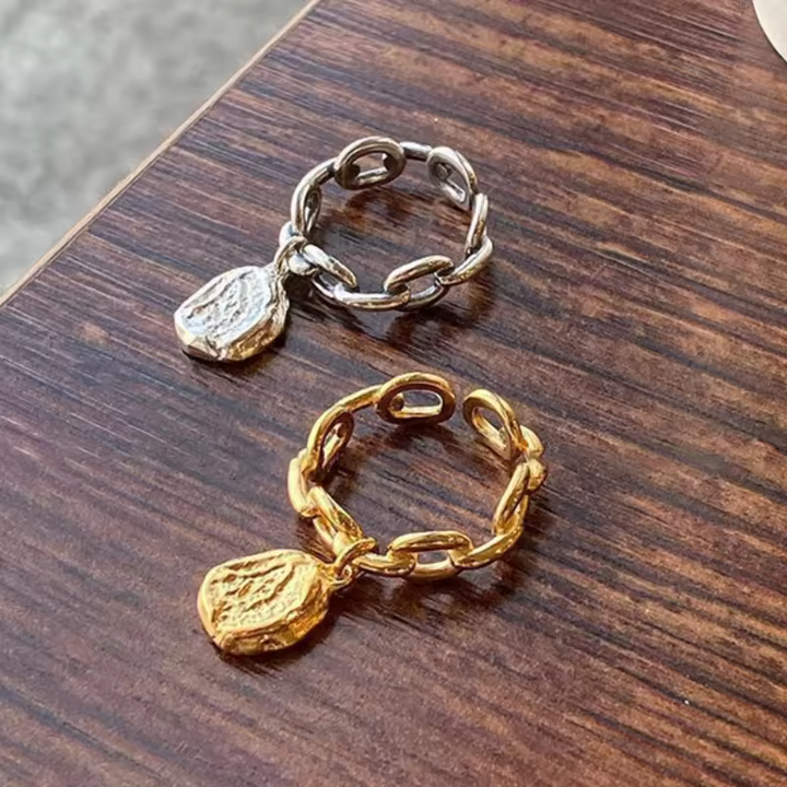 Damen Ring mit Anhänger kette- Look Silber 925, größenverstellbar