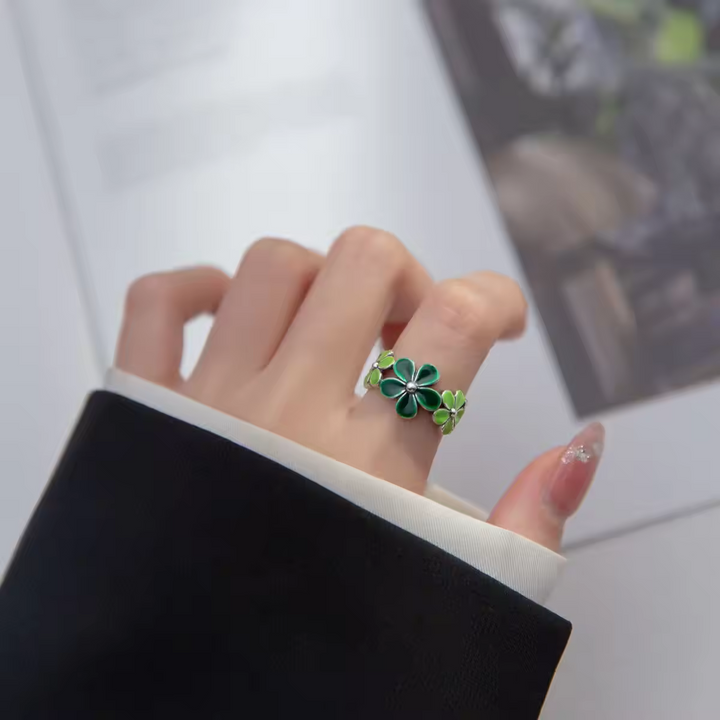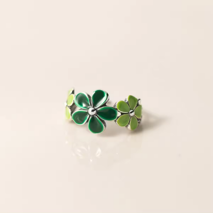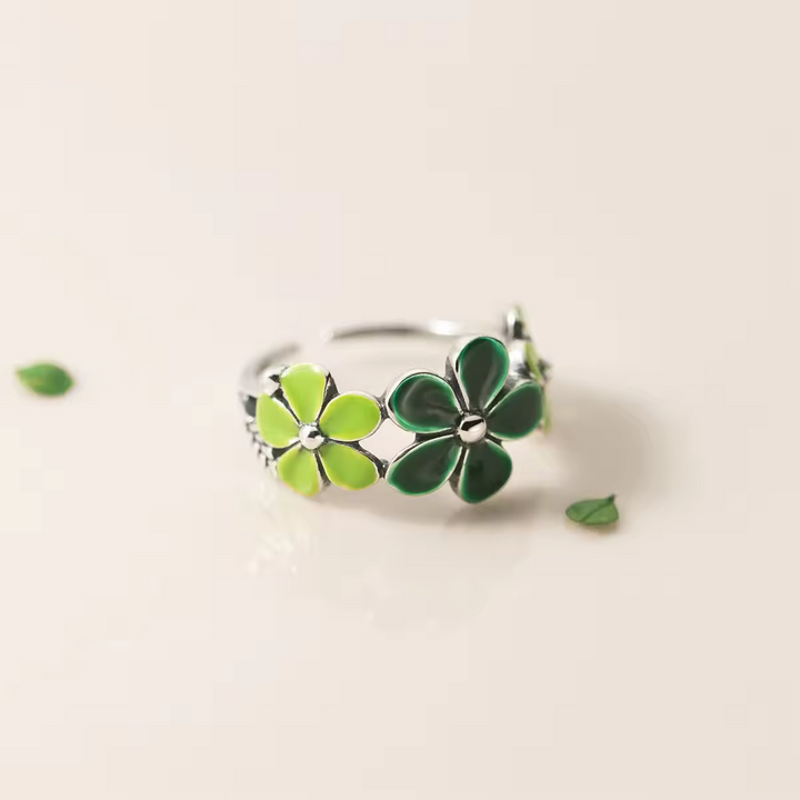 Damen Ring mit grüner Blume, Sterling-Silber 925, Größe wählbar