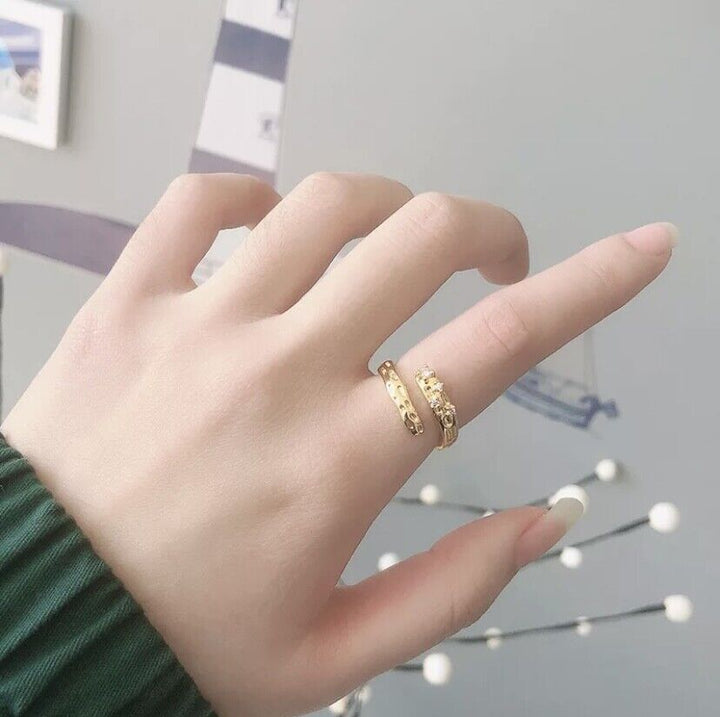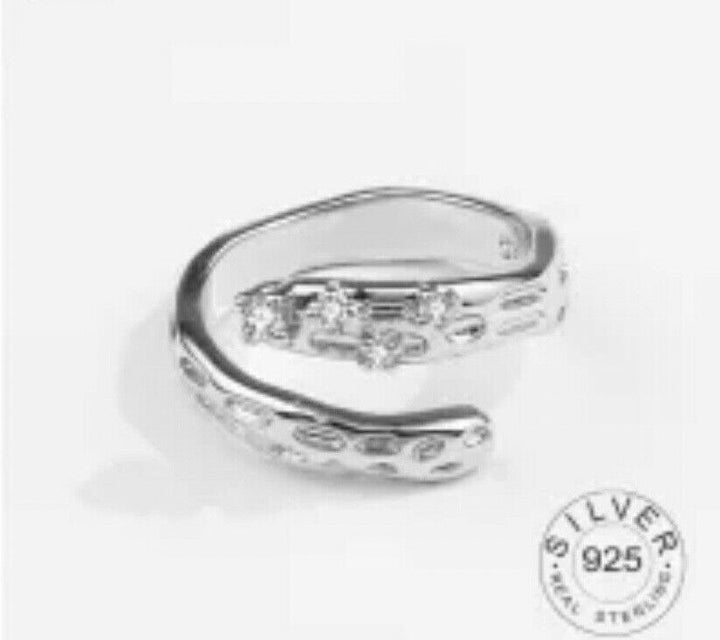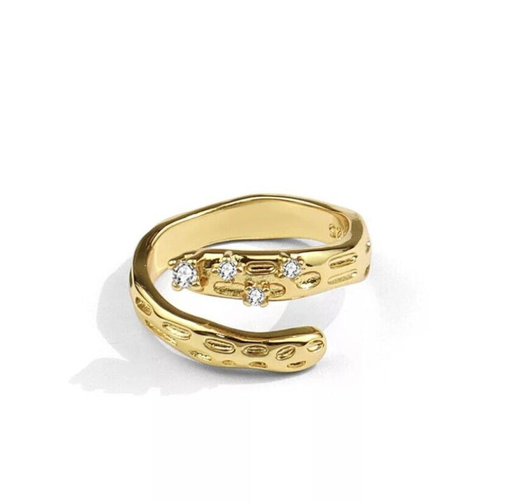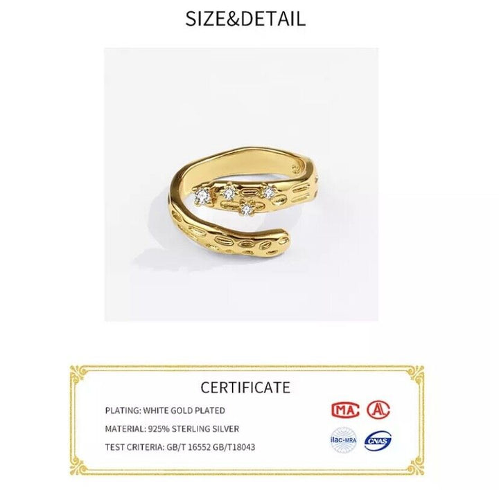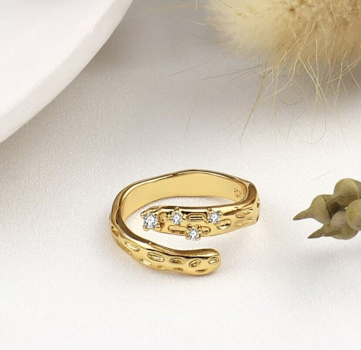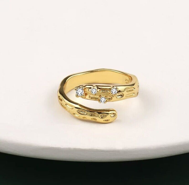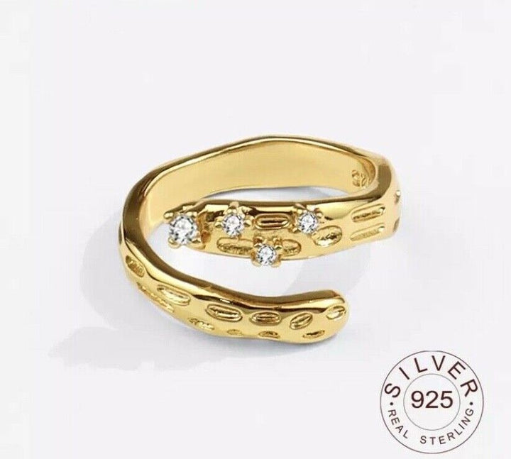 Damen Ring mit Zirkonia echt Silber 925 offen Unregelmäßige Oberfläche