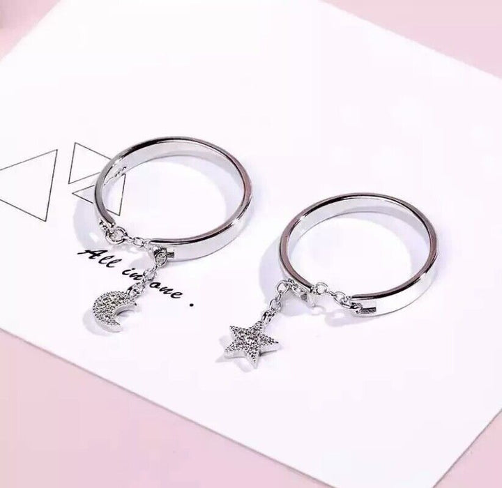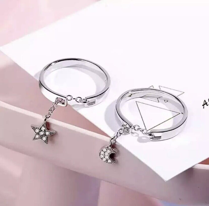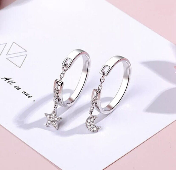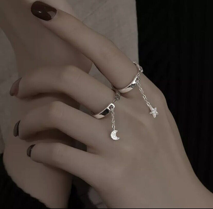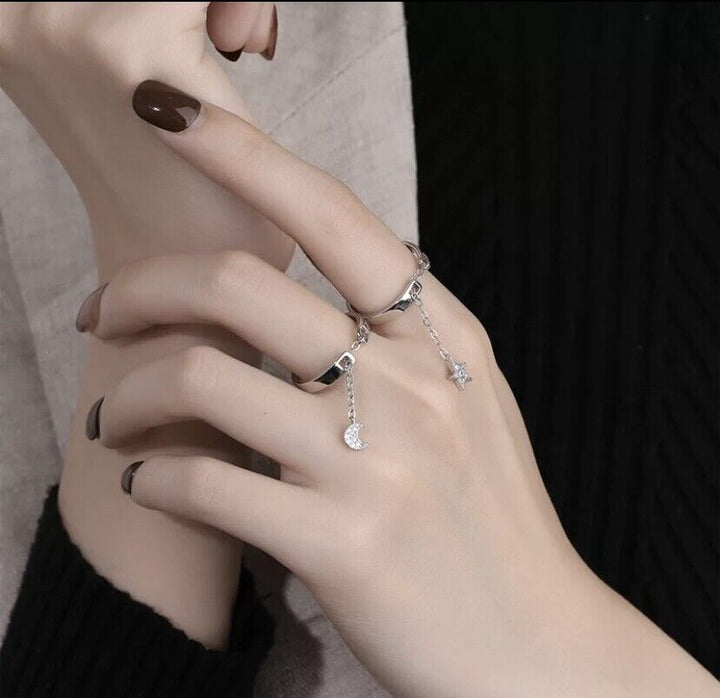 Damen Ring Mond-Stern mit kette echt Silber 925 Anpassbar für alle Größe.