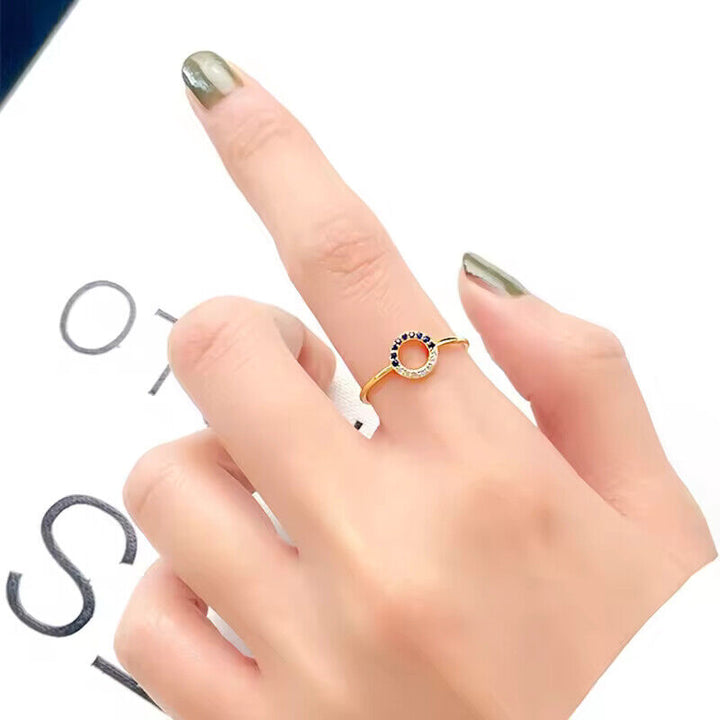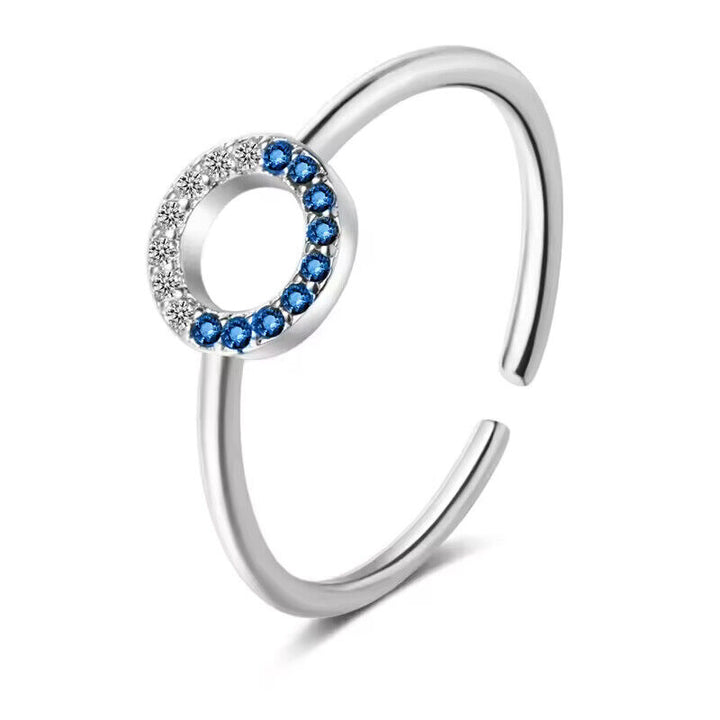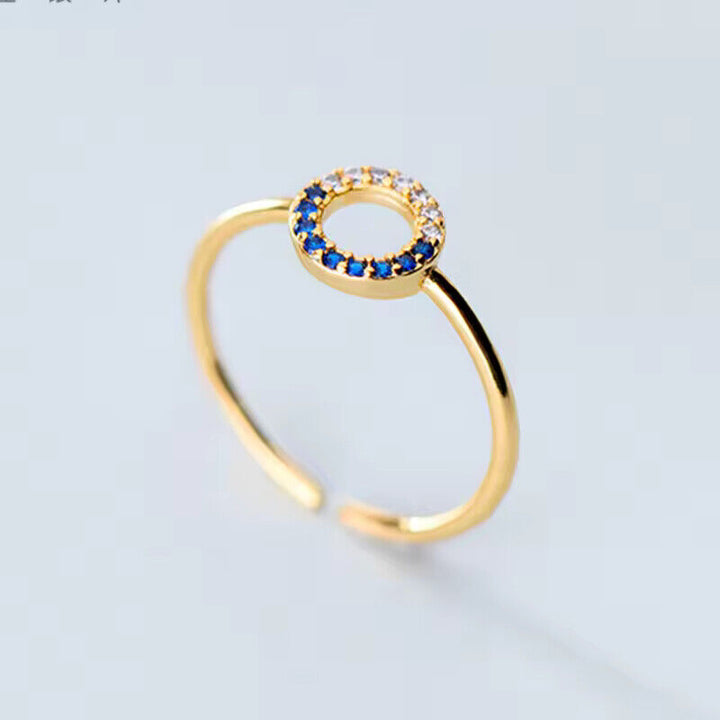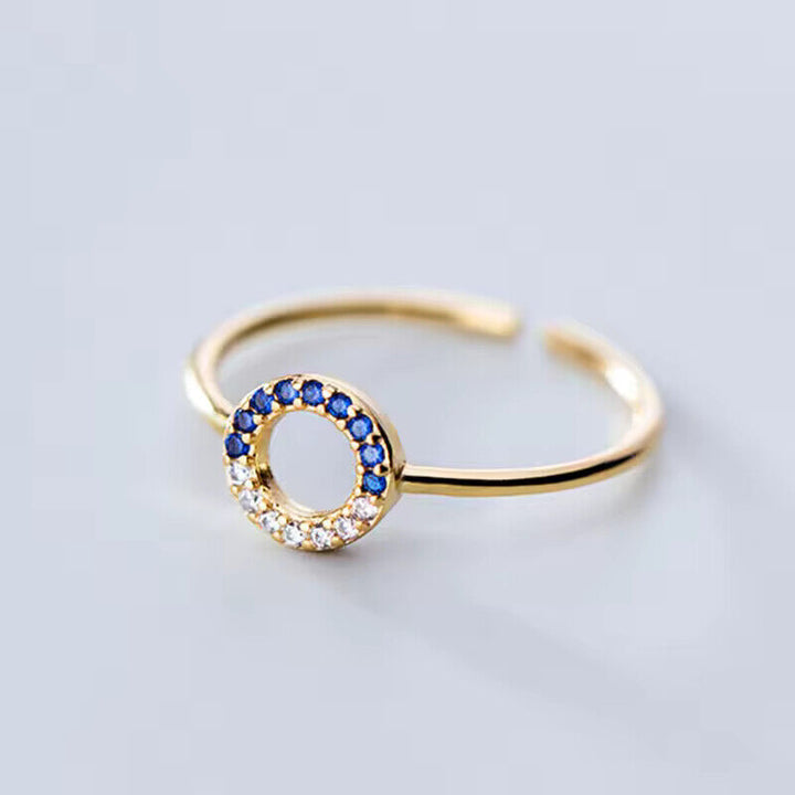 Damen Ring runde Motiv, Sterling Silber 925, blauer Zirkon, größenverstellbar