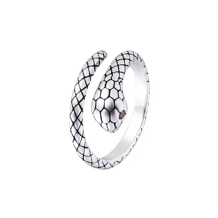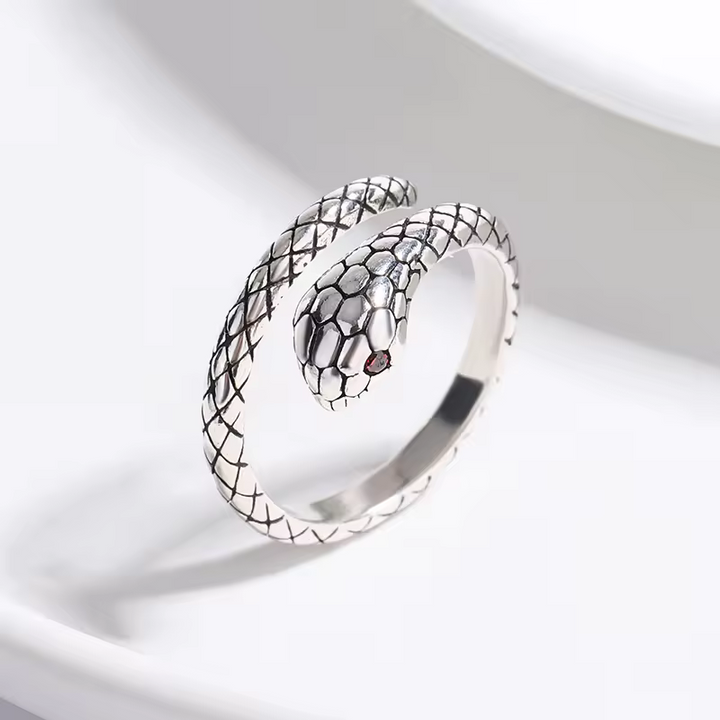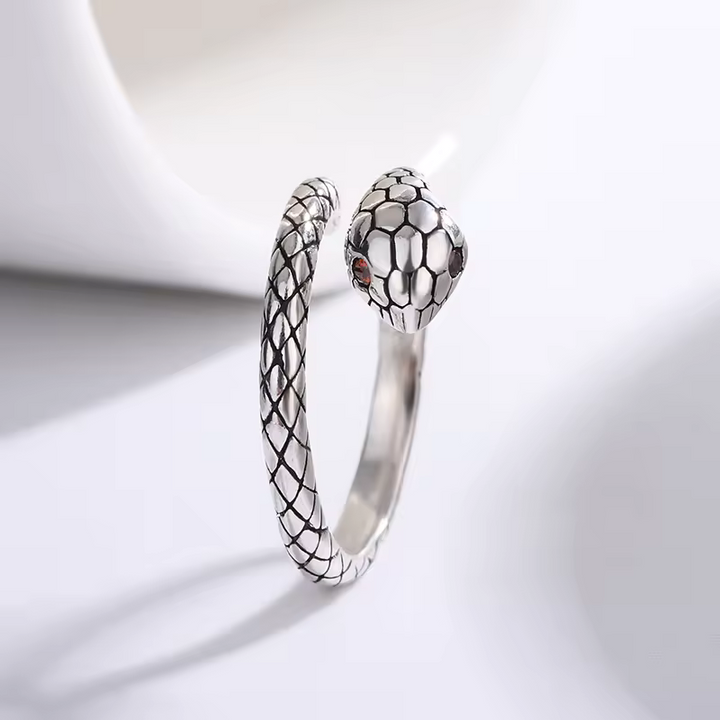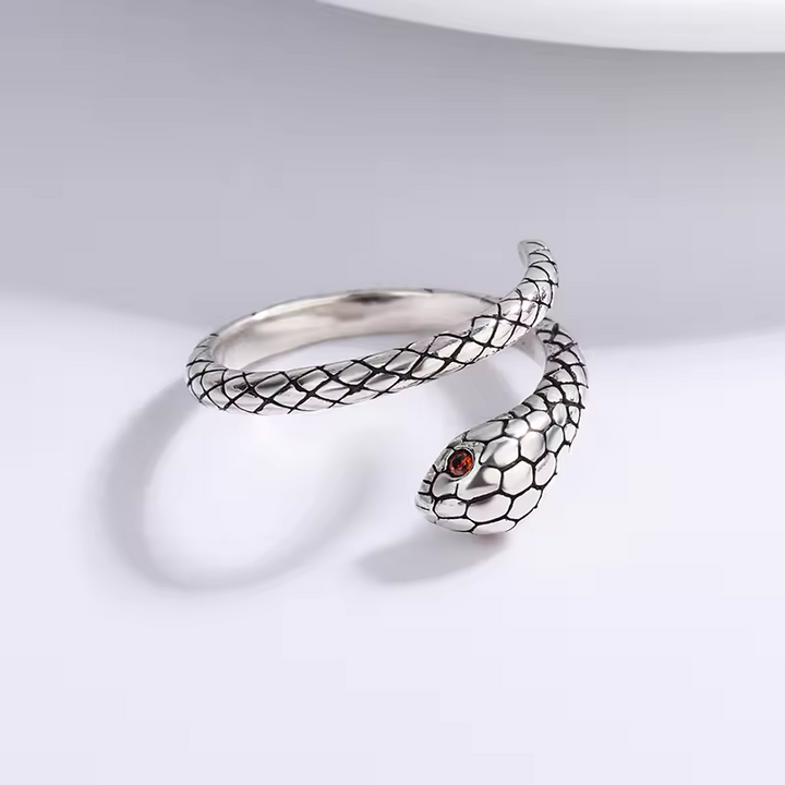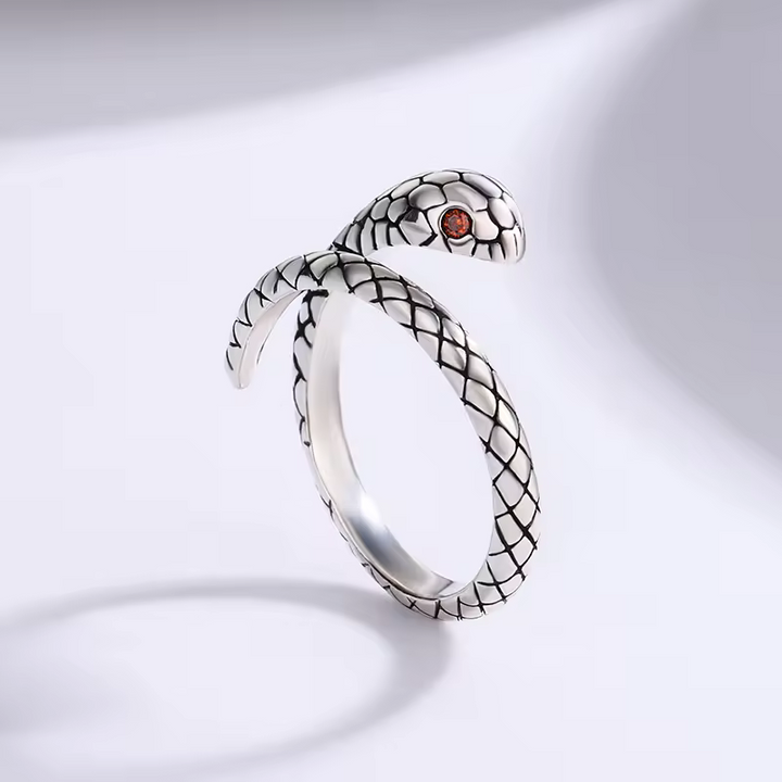 Damen Ring Schlange Motiv, Sterling Silber 925, geschwärzt, Rot,Größe wählbar