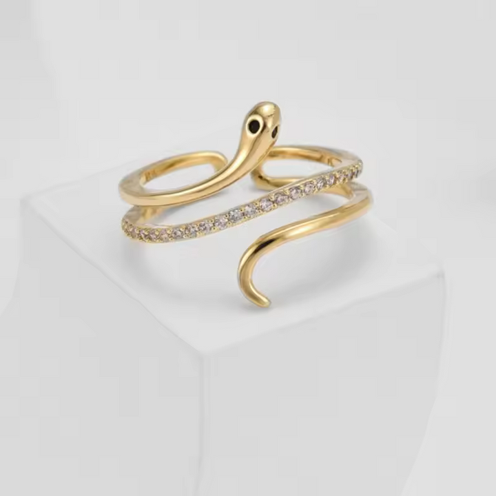 Damen-Ring Schlange, Sterling Silber 925 mit schwarzen Zirkonia, Größe wählbar