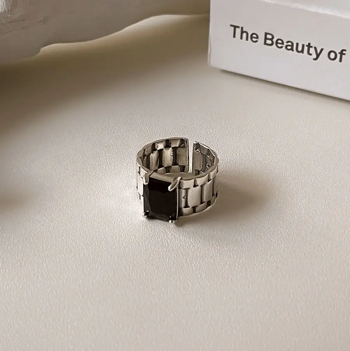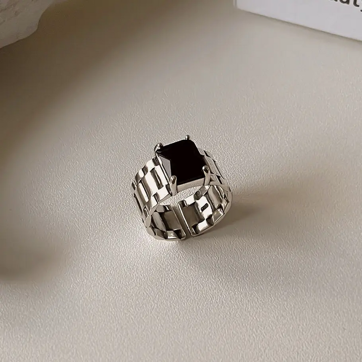 Damen Ring Sterling Silber 925 Kette-Look Schwarze Zirkonia verstellbar 48-55