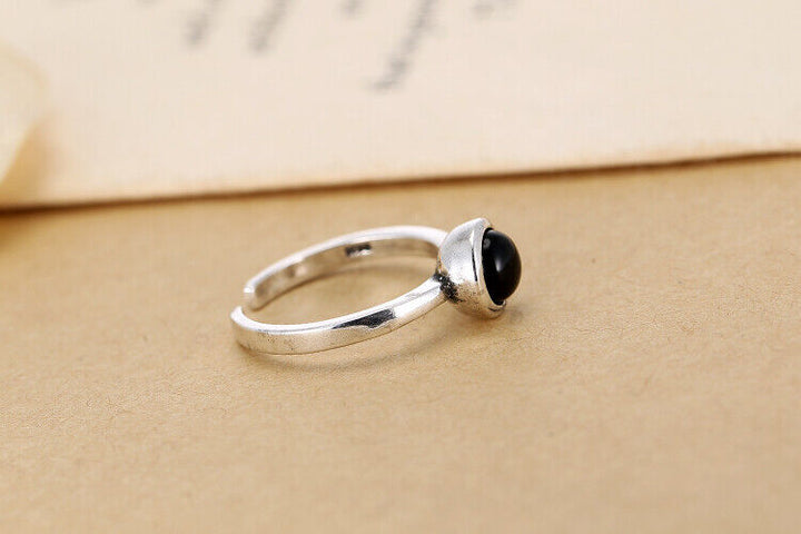 Damen Ring Sterling Silber 925 Raute schwarz Größenverstellbar 48-52