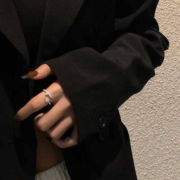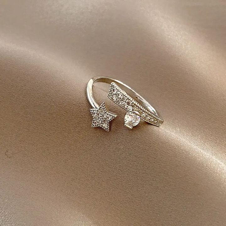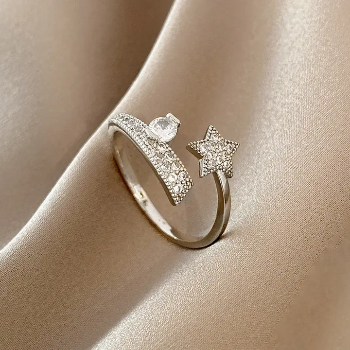 Damen Ring Stern Silber mit Zirkonia Damen Größeverstellbar Ring