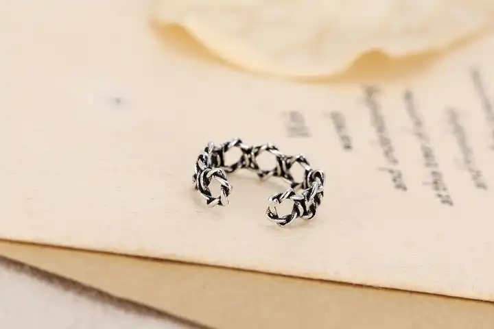 Damen Ring Sterne Sterling Silber 925 Geschwärzt Verstellbar