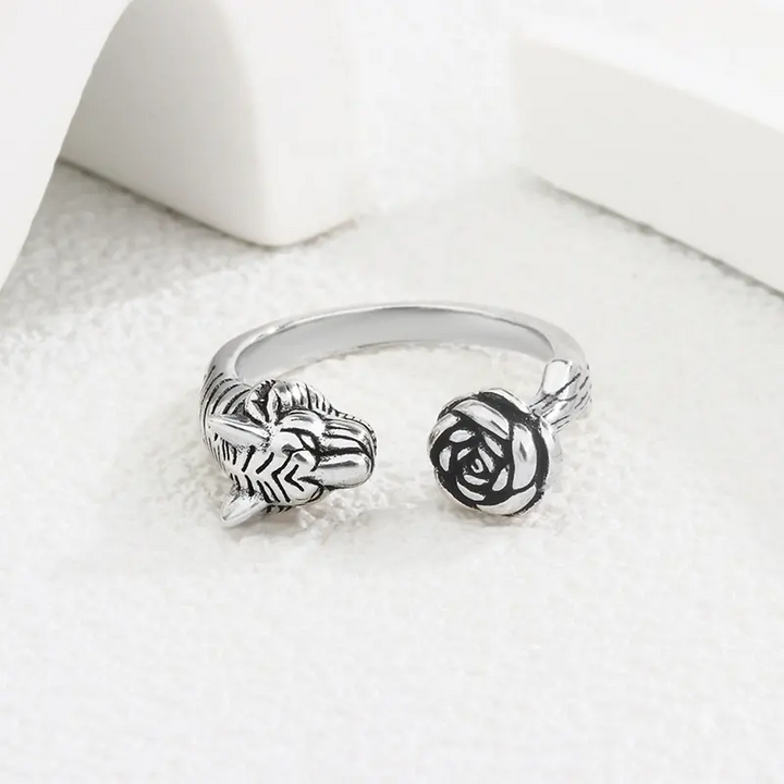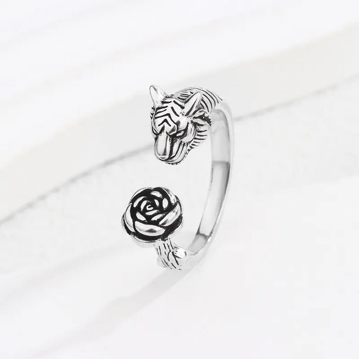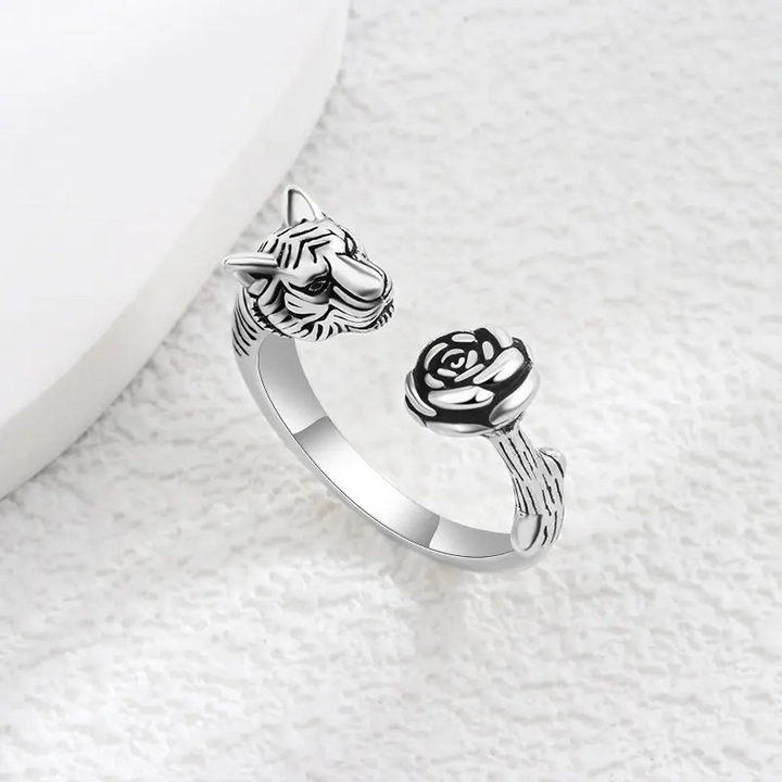 Damen Ring Tiger - Rose Silber geschwärzt Größeverstellbar