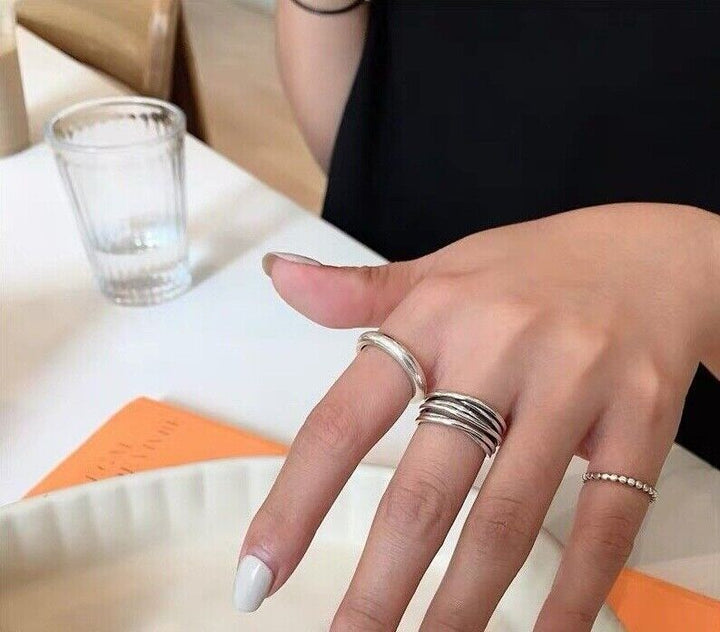 Damen Ring Überkreuzt Silber 925 Geschwärzt Offen Verstellbar 48-56