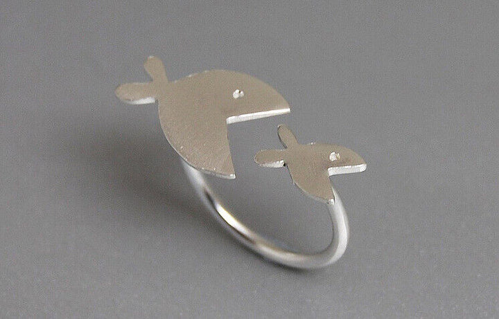 Damen Ring Zwei Fisch Sterling Silber 925 größenverstellbar 50-55