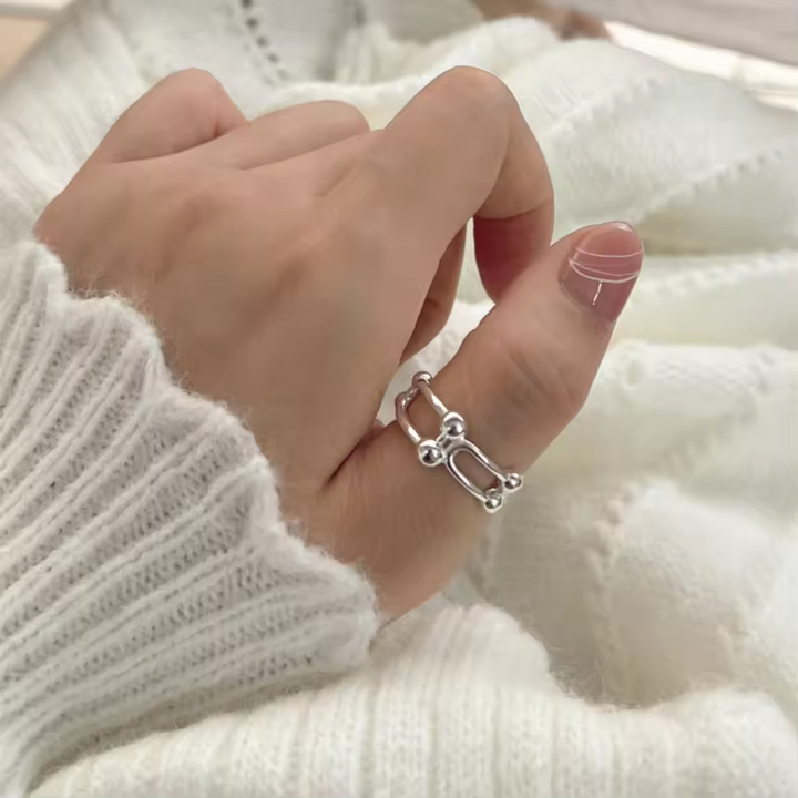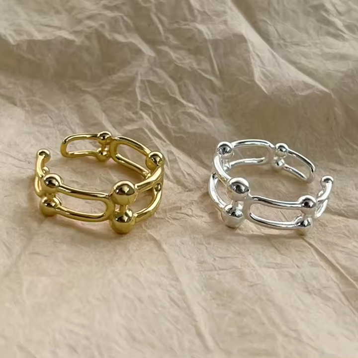 Damen Ring zwei Reihen verstellbar Sterling Silber 925 - kugeln Ring